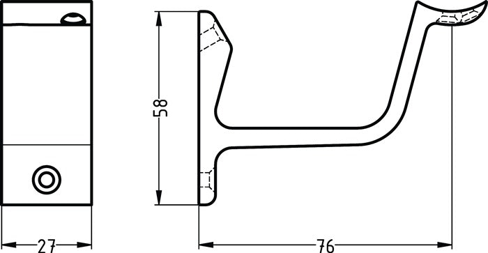 nach DIN 18040 · gewölbte Auflage · Aluminiumprofil · Wandabstand 76 mm · Wandplatte Höhe 58 mm Breite 27 mm · mit versenkten Schraublöchern · TÜV-zertifiziert · ohne Befestigungsmaterial