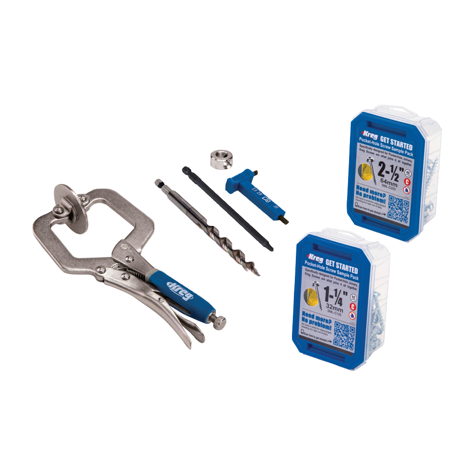KREG Pocket Hole Jig 520 PRO Taschenloch Bohrschablone ( KPHJ520PRO ) + Stufenbohrer + Bit + Schrauben + Zwinge