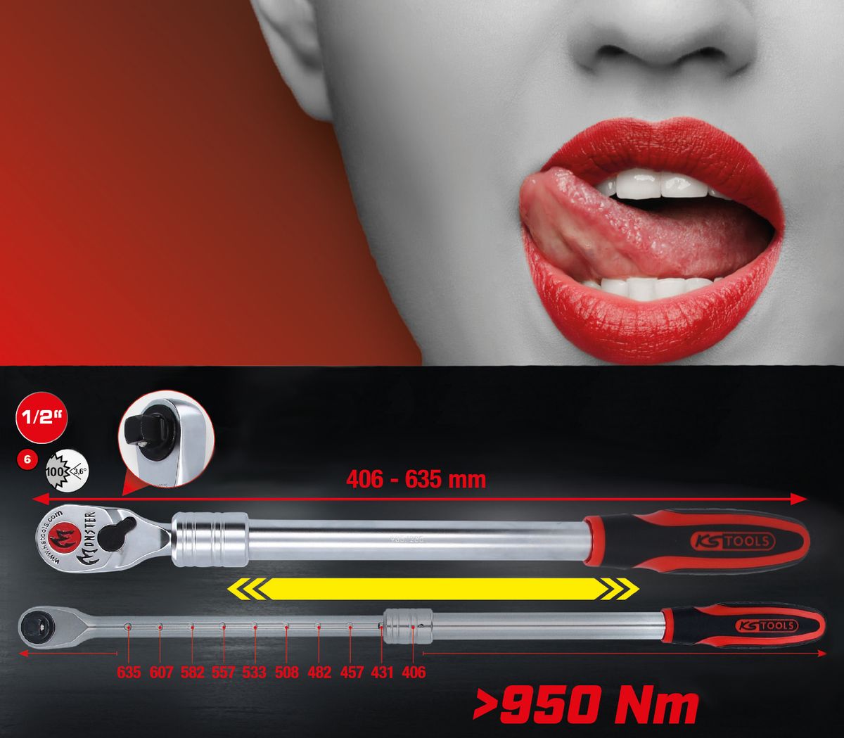KS TOOLS 1/2" Monster Teleskop-Umschaltknarre, 100 Zahn ( 935.1285 )
