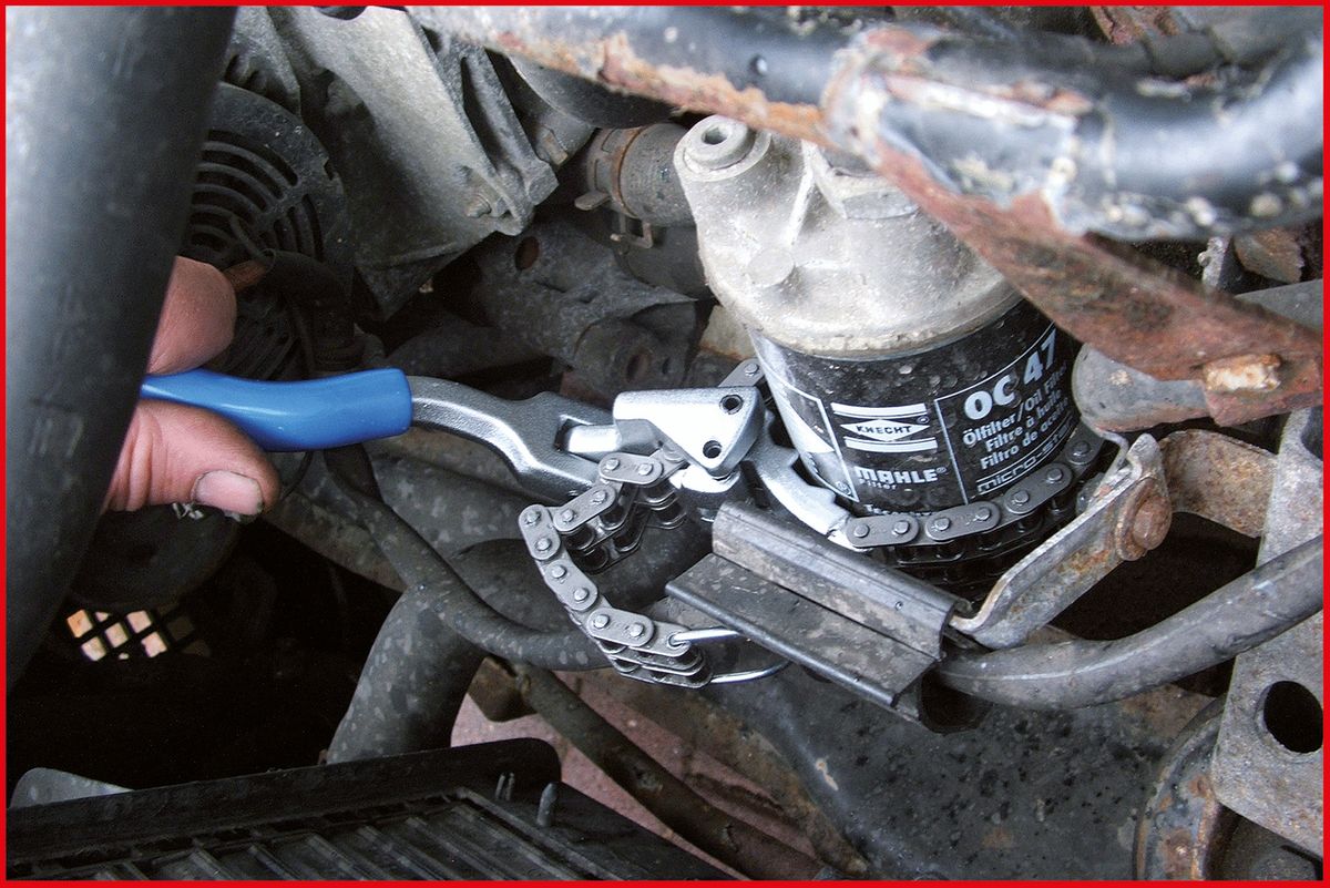 • Doppel-Spannkette mit zusätzlichen Rillen gibt sicheren Halt am Filter und sorgt für kraftschlüssiges Lösen des Filters