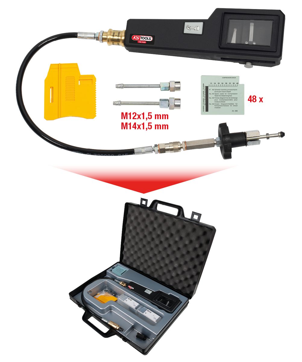 KS TOOLS Kompressions-Druckprüfgerät für Dieselmotoren mit Diagrammschreiber, 53-tlg ( 150.1656 )