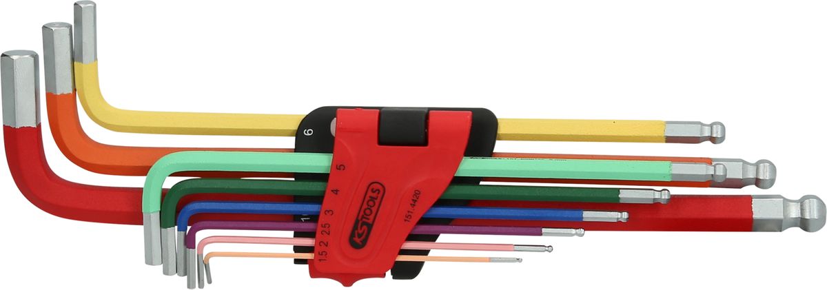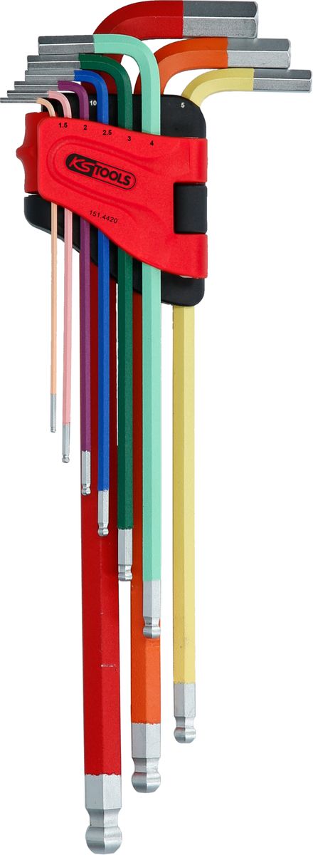 KS TOOLS Kugelkopf-Innensechskant-Winkelstiftschlüssel-Satz, extra lang, 9-tlg ( 151.4420 )
