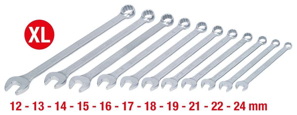 Ringmaulschlüssel-Satz, XL 11-tlg 12-24mm · Ringmaulschlüssel-Satz, extra lang