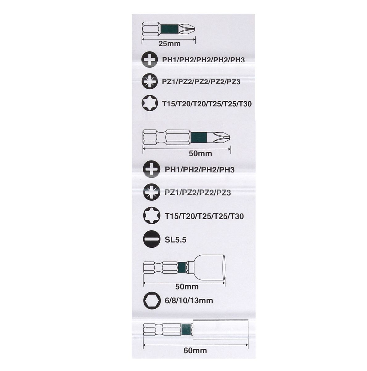 Das Makita Bit Set Impact Black besteht aus hochlegiertem S2 Stahl und besitzt dank der zusätzlichen Hitzebehandlung eine höhere Lebensdauer und Festigkeit als Standard Bits. Dank der mit höchster Präzision gefertigten Spitzen ist ein optimaler Halt am Schraubenkopf gegeben. Durch die im Set enthaltenen Bits sind die meisten Anwendungen abgedeckt. Die 1/4" Aufnahme gewährleistet eine Kompatibilität zu den meisten Bohrschraubern. Makita ist einer der führenden Hersteller im Bereich der Elektrowerkzeuge und steht für Produkte auf höchsten Qualitätsniveau.