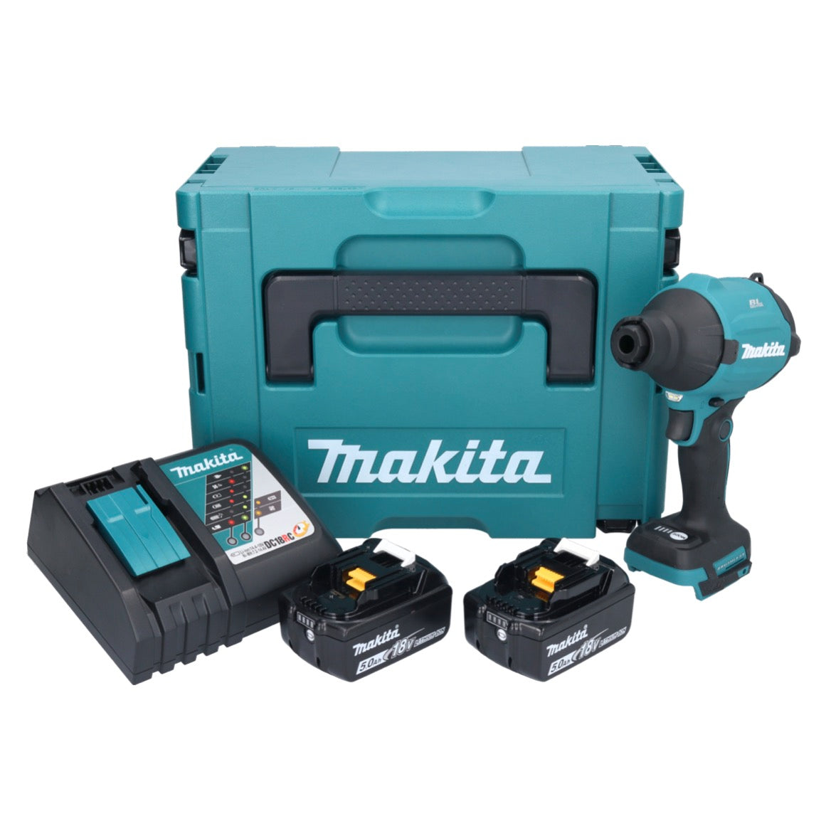 Makita DAS 180 RTJ Akku Gebläse 18 V Brushless + 2x Akku 5,0 Ah + Ladegerät + Makpac