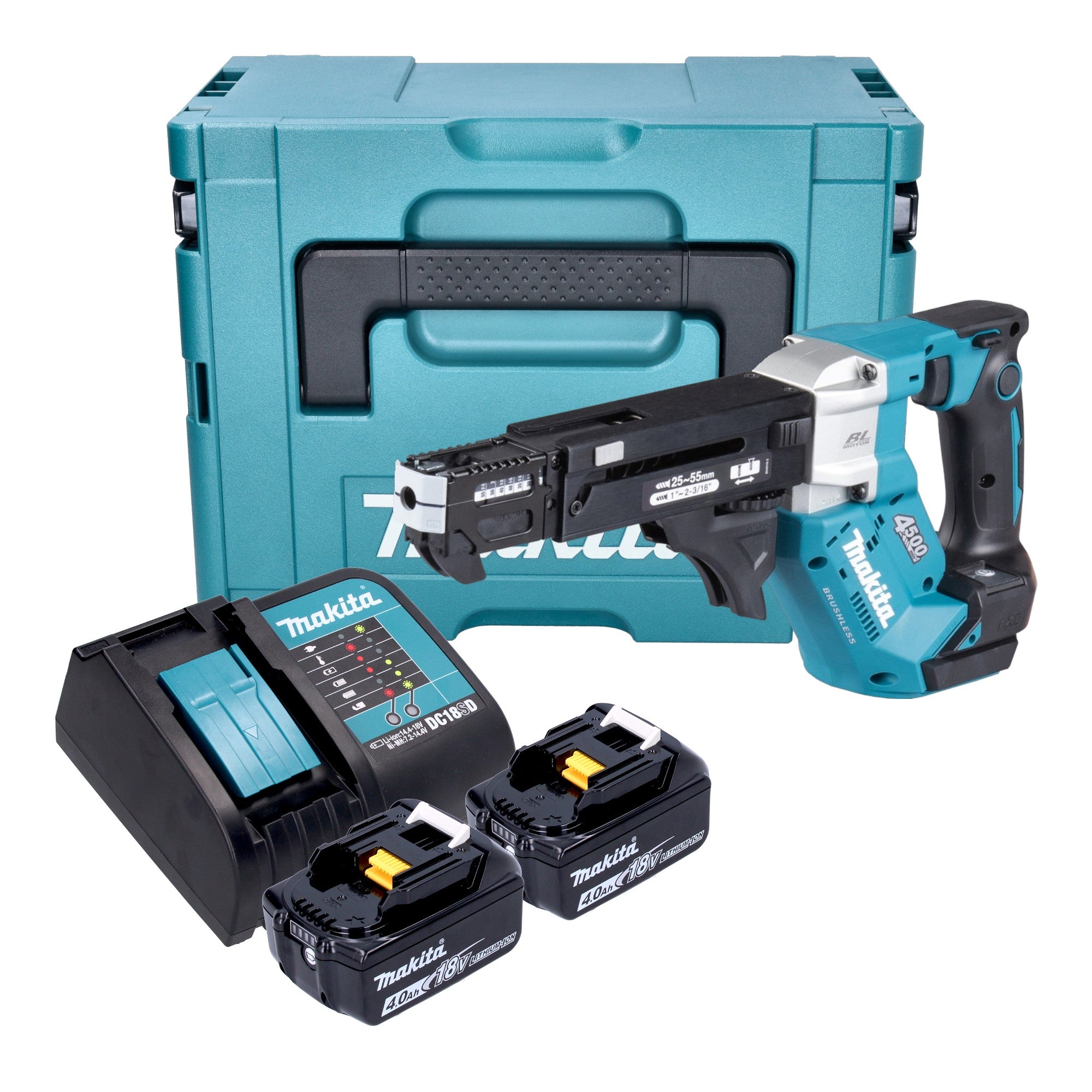 Makita DFR 552 SMJ Akku Magazinschrauber 18 V 25 - 55 mm Brushless + 2x Akku 4,0 Ah + Ladegerät + Makpac