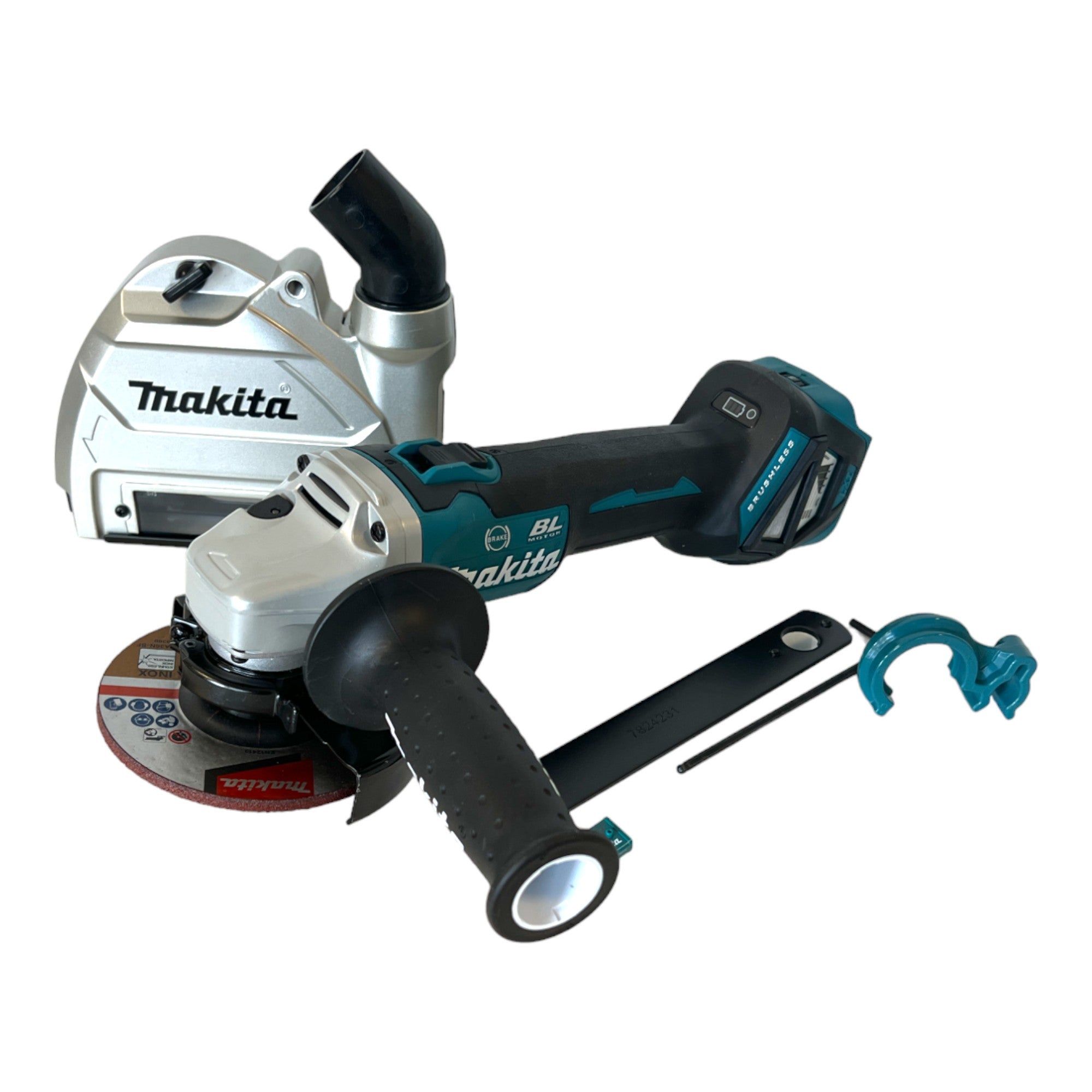 Der Makita DGA514 ist ein leistungsstarker und handlicher Akku-Winkelschleifer, ideal für professionelle Anwendungen. Ausgestattet mit einem bürstenlosen Motor und einer einstellbaren Drehzahl, ist dieses Gerät perfekt für Trenn- und Schleifarbeiten geeignet. Der Winkelschleifer verfügt über einen 18-V-Antrieb und kann Scheiben mit einem Durchmesser von bis zu 125 mm aufnehmen. Zusätzliche Sicherheit bietet die Motorbremse sowie ein Wiederanlaufschutz, der verhindert, dass das Gerät nach einem Stromausfall unbeabsichtigt startet. Eine der herausragenden Funktionen ist das Auto-Start Wireless System (AWS), welches den Winkelschleifer über Bluetooth mit einem Staubsauger verbindet, um die Staubabsaugung automatisch zu starten. Die Automatic Torque Drive Technology (ADT) passt während des Betriebs die Drehzahl automatisch an, um abhängig von den Anforderungen der Arbeit eine optimale Leistung zu erzielen. Zudem schützt der Tiefentladeschutz das Gerät, indem es automatisch abschaltet, wenn der Akku fast leer ist, was die Lebensdauer des Akkus und des Geräts verlängert.