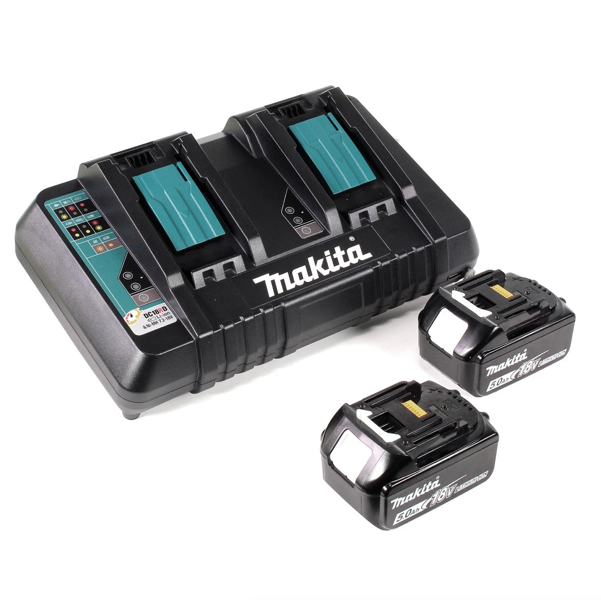 Makita DGA 900 PTKX2 Akku Winkelschleifer 36V ( 2x18V ) 230mm Brushless + 2x Akku 5,0Ah + Doppelladegerät + Ezynut + Koffer