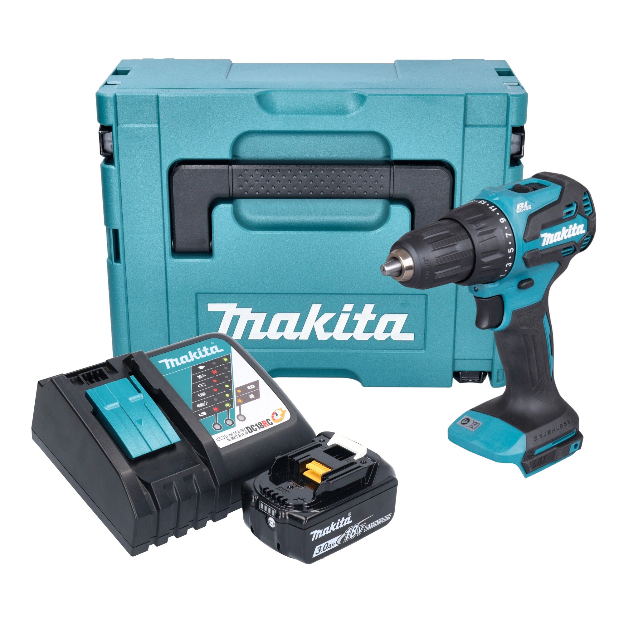 Makita DHP 490 RF1J Akku Schlagbohrschrauber 18 V 65 Nm Brushless + 1x Akku 3,0 Ah + Ladegerät + Makpac
