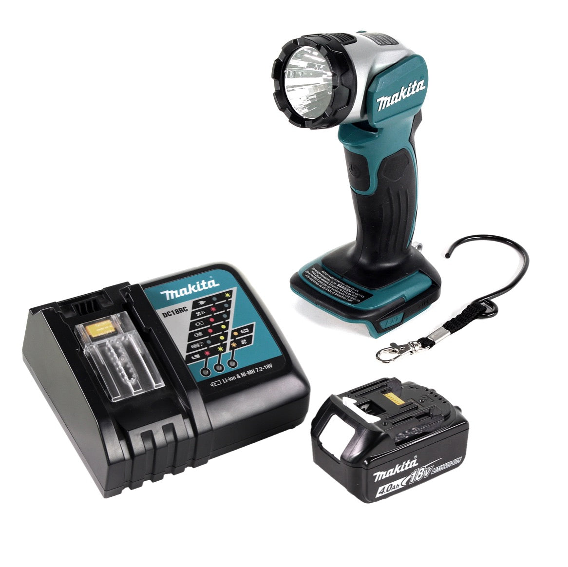 Makita DML 802 RM1 Akku Lampe 18 V Li-Ion für 14,4 und 18 V Akku + 1 x 4,0 Ah Akku + Ladegerät