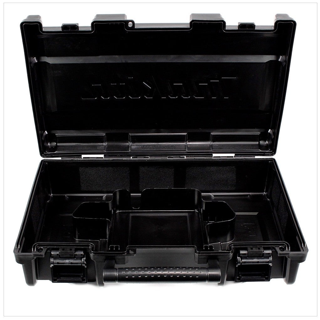 Der Makita Werkzeugkoffer in schwarz und aus Kunststoff eignet sich für zwei 18 Volt Akku Schrauber von Makita gleichzeitig, sowie zwei Akkus und ein Ladegerät. Die beiden Maschinen können geräumig verstaut und sicher transportiert werden, da die Perforierung im Inneren des Koffers dafür sorgt, dass nichts verrutschen oder aufeinanderprallen kann. Der Koffer selbst ist sehr robust und trotzt allen Widrigkeiten auf der Baustelle. Folgende Maschinen können in dem Koffer verstaut werden: BHP / DHP // BDF / DDF 456 458 459 480 482 sowie BTD / DTD 129 134 146 .