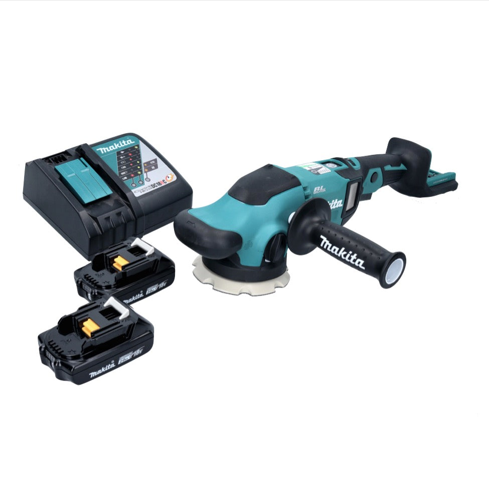 Makita DPO 500 RA Akku Exzenterpolierer 18 V 125 mm Brushless + 2x Akku 2,0 Ah + Ladegerät