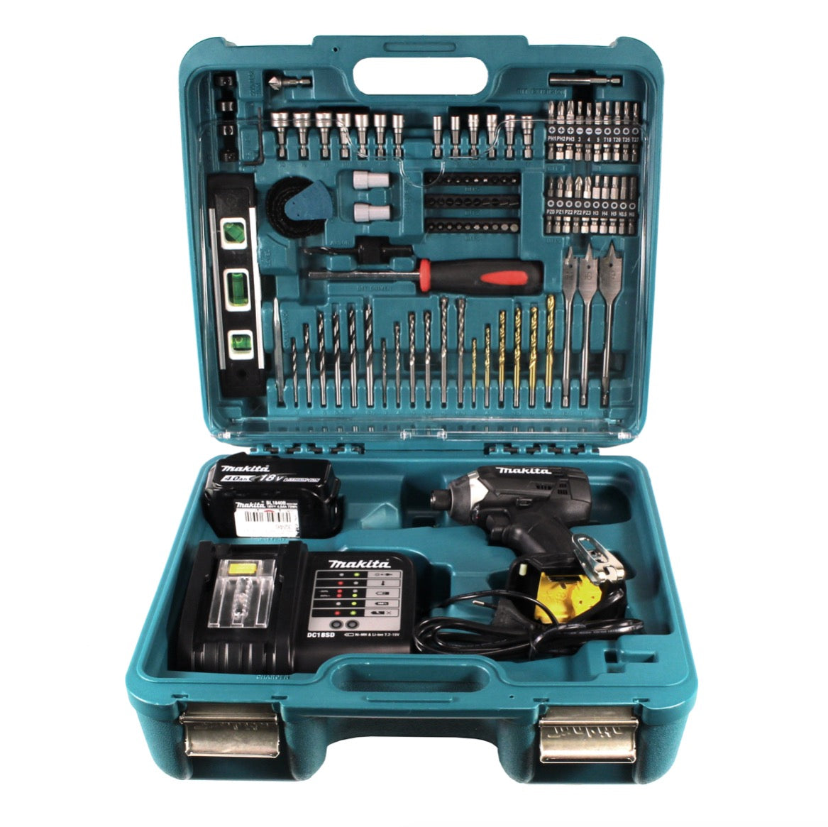 Makita DTD 152 SMTK B Akku Schlagschrauber 18V 165Nm + 1x Akku 4,0Ah + Ladegerät + 101tlg. Zubehörset im Koffer