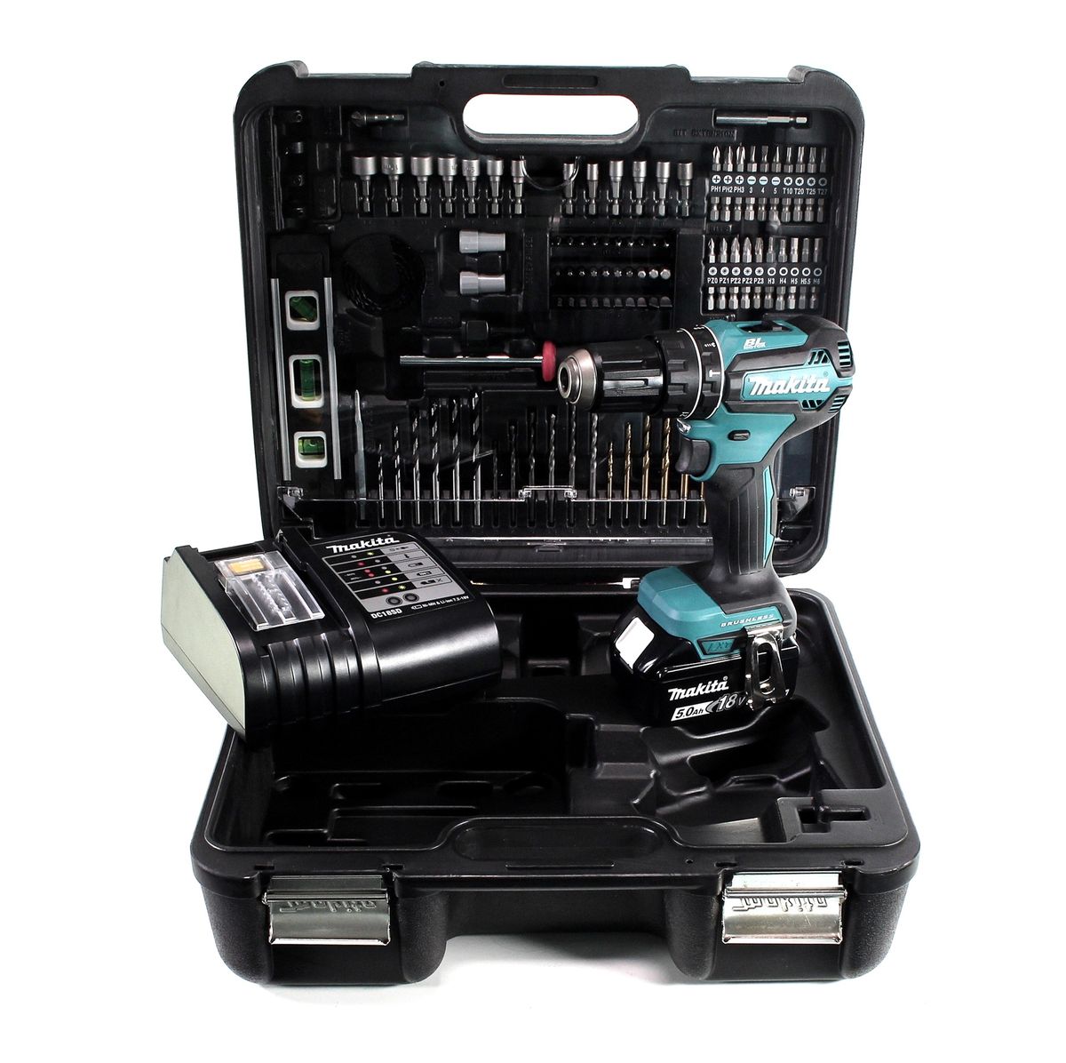 Der Akku-Schlagschrauber ist für das Eindrehen von Schrauben in Holz, Metall und Kunststoff vorgesehen. Der Schlagschrauber überzeugt durch seine ergonomische und kompakte Bauweise. Mit der 1/4"-Innensechskant Werkzeugaufnahme lassen sich verschiedene Aufsätze schnell und einfach auswechseln. Das Werkzeug schaltet sich während des Betriebs automatisch ab, wenn Werkzeug und/oder Akku überlastet sind bzw. die Akku-Restkapazität niedrig ist. Dies hilft die Akku-Lebensdauer zu verlängern. Der ergonomische Griff mit weichem Belag ermöglicht einen hohen Arbeitskomfort beim Arbeiten mit diesem Elektrowerkzeug. Das Aluminium-Getriebegehäuse mit Schutzschicht macht den Schlagschrauber robust und sorgt für maximale Widerstandsfähigkeit. Die Einstellung des Links- /Rechtslauf geht leicht von der Hand dank des integrierten Schiebeschalters im Handgriff. Die kraftvolle LED Doppel-Beleuchtung macht auch Arbeiten an weniger gut ausgeleuchteten Stellen problemlos möglich. Mit dem 101-teiligem Werkzeugkoffer der Qualitätsmarke Makita ist alles was für den professionellen Einsatz oder den privaten Heimwerkergebrauch schnell griffbereit. Im Koffer finden ein Akku, ein Ladegerät und eine Maschine Platz. Der Koffer ist robust, abschließbar und mit dem Handgriff leicht zu transportieren. Kein lästiges suchen in an vielen Orten, mit dem Makita Koffer ist alles an einem Platz.