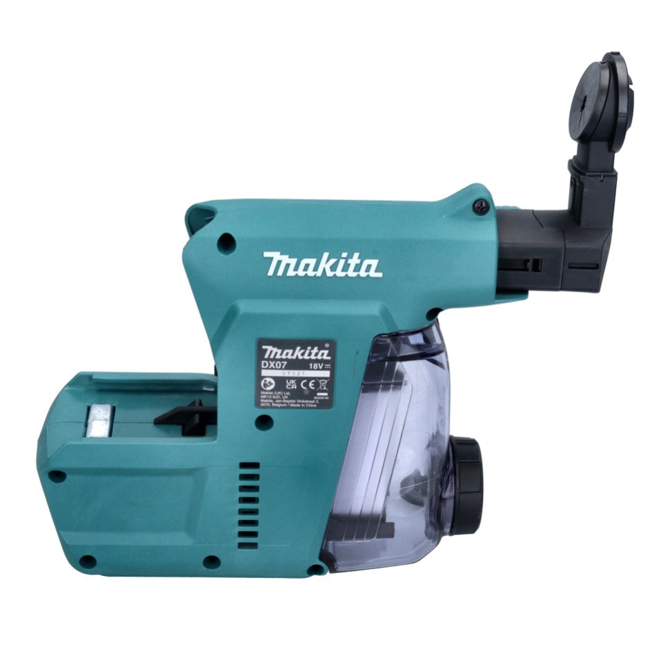Die Makita DX07 eignet sich ideal für eine effektive Staubabsaugung beim Bohren in trockenen Materialien. Insbesondere dort, wo es auf eine saubere Arbeitsumgebung ankommt. Es müssen weder Kabel noch Schlauch mitgeführt werden. Die Staubabsaugung wird per Strom über den Bohrhammer betrieben. Sie ist mit den Bohrhämmern BHR 243 und DHR 243 kompatibel. Die Größe des Staubbehälters ermöglicht eine längere Betriebszeit zwischen den Reinigungsvorgängen. Die Staubbox ist leicht abnehmbar und sorgt damit für eine schnelle und einfache Staubentsorgung. Dank des transparenten Staubbehälters ist eine schnelle Kontrolle des Füllstandes möglich. Bei nachlassender Saugkraft kann durch die Nutzung der Reinigungsvorrichtung der Staub vom Filter entfernt werden, ohne das ein Abnehmen der Staubbox notwendig ist. Der Tiefenbegrenzer dient der genauen Tiefeneinstellung von Bohrlöchern. Eine Doppelverriegelung verhindert das unbeabsichtigte Lösen vom Bohrhammer. Makita ist ein führender Elektrowerkzeughersteller, der durch lange Tradition und Qualität überzeugt.