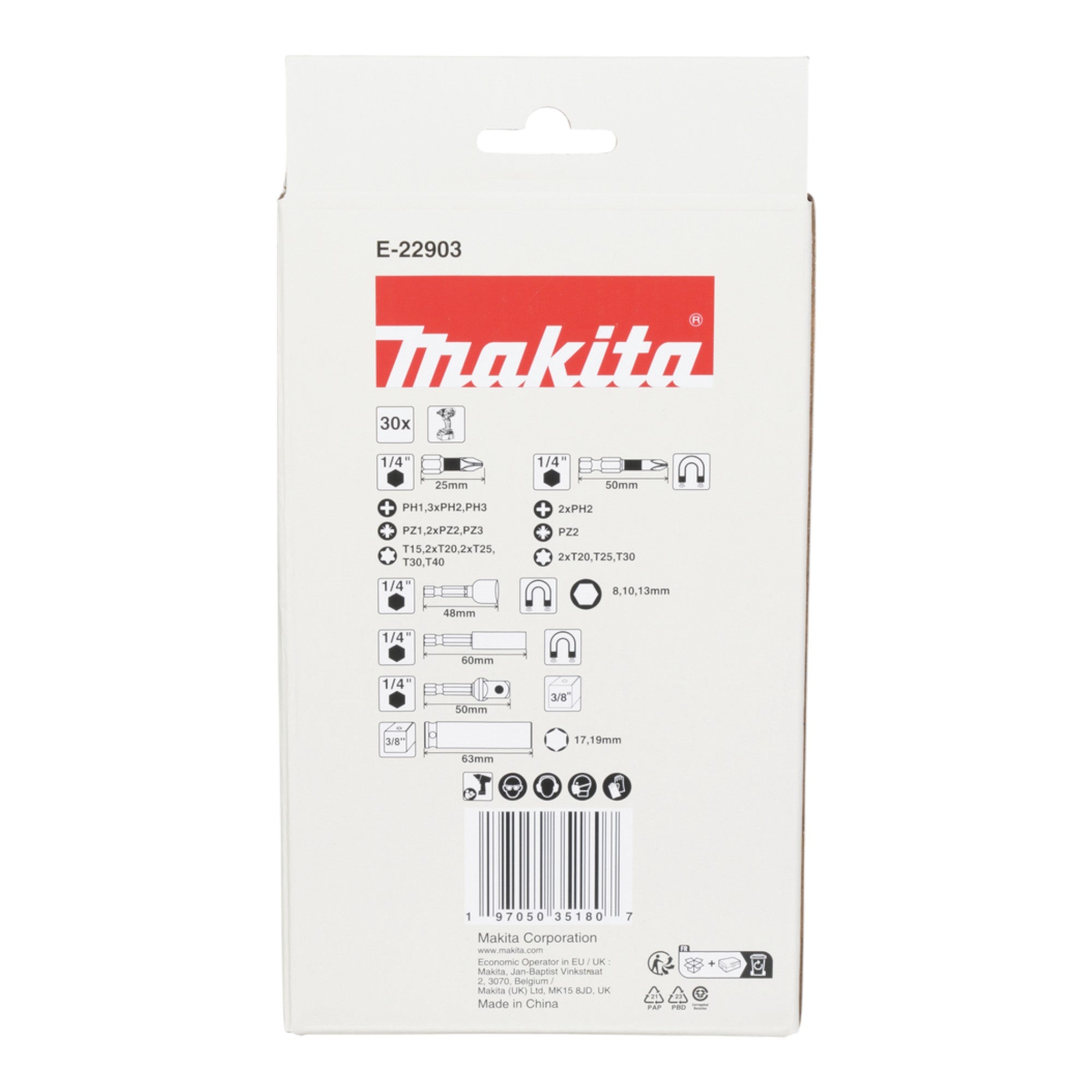 Makita E-22903 Bit und Schlagnuss Set 1/4" / 3/8" 30 tlg. IMPACT BLACK Bits / Schlagnüsse / Steckschlüssel