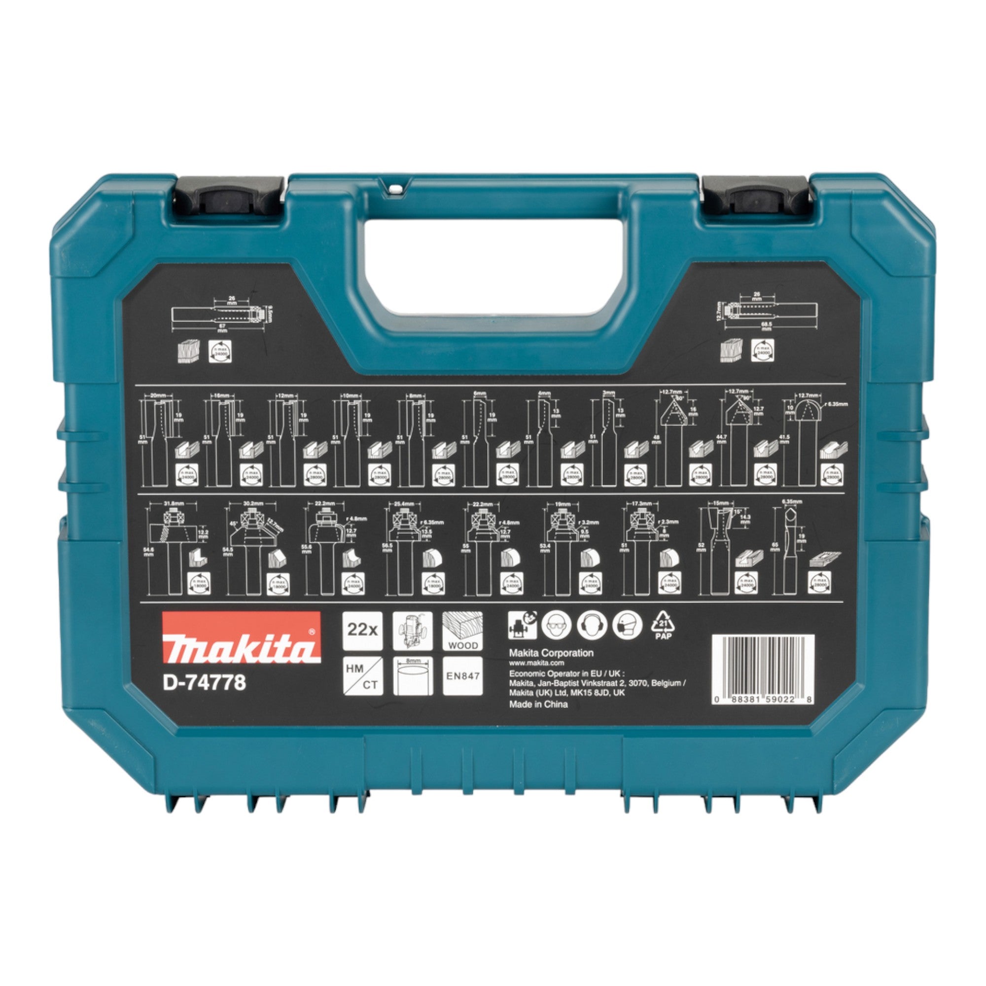 Makita Fräser Set ( D-74778 ) 22 tlg. 8 mm Schaft für den Möbelbau, Schreiner-, Tischlerarbeiten und Heimwerker