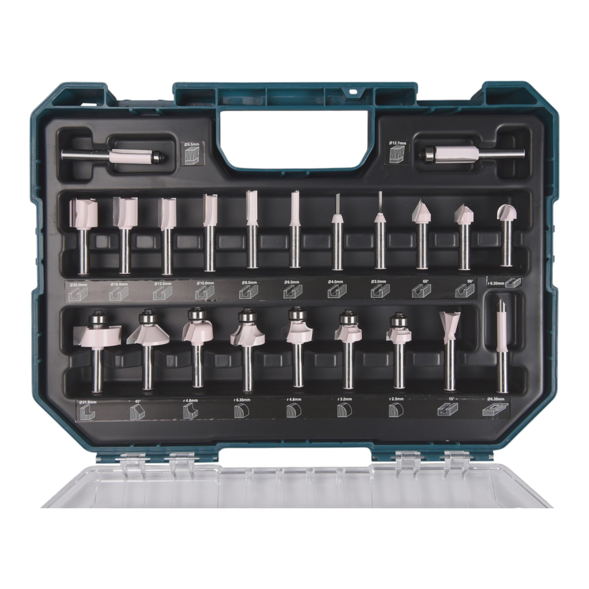 Mit dem Makita 22-teiligen Fräser-Set in einem praktischen Transportkoffer mit transparentem Deckel sind Sie bestens ausgestattet für Holzarbeiten verschiedenster Art. Ob in der Möbelfabrik, von Schreinern, Heimwerkern oder anderen Profis - dieses Set bietet für jeden Anwendungsbereich den passenden Fräser. Der Schaftdurchmesser beträgt 8 mm, was eine zuverlässige Nutzung ermöglicht. Der Koffer hat die Maße ca. 250 x 345 mm und sorgt für einen sicheren Transport und eine ordentliche Aufbewahrung der Fräser. Machen Sie Ihre Holzarbeiten effizienter und präziser mit diesem hochwertigen Fräser-Set.
