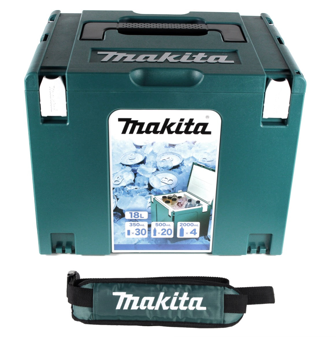 Diese praktische Kühlbox aus dem Hause Makita ist ein Makpac Koffer Größe 4 und somit mit allen Makpacs kompatibel. Die Koffer lassen sich bequem stapeln, festklicken und einfach transportieren. Die Konstruktion des Makita MAKPACs besteht aus doppelwandigen Eckprofilen und verstärkten Deckel-, Seiten- und Bodenflächen. Des Weiteren erhöhen abgerundete Gehäuse- und Griffkanten den Benutzer- und Tragekomfort. Diese Box hat eine Isoliereinlage, sodass zum Beispiel Getränke kühl gehalten werden können. Ein Stecker für elektrische Kühlung ist nicht vorhanden. So ist diese Box perfekt für heiße Sommertage geeignet, wenn keine Steckdose in der Nähe ist. Sie hat ein Volumen von 18 Litern. Sie fasst 30 kleine Dosen, 20 x 0,5 Liter Flaschen oder vier Mal 2 Liter Flaschen. Durch den mitgelieferten Tragegurt lässt sie sich zudem gut transportieren.