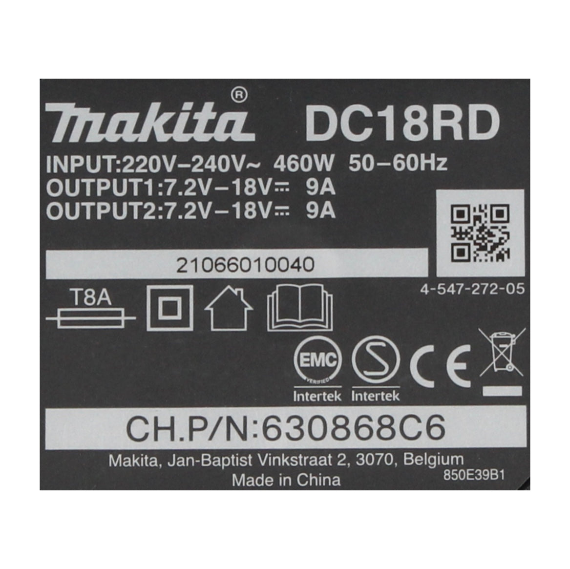 - 1x Makita DC 18 RD Doppel Schnellladegerät 14,4 V - 18 V LXT ( 196933-6 )