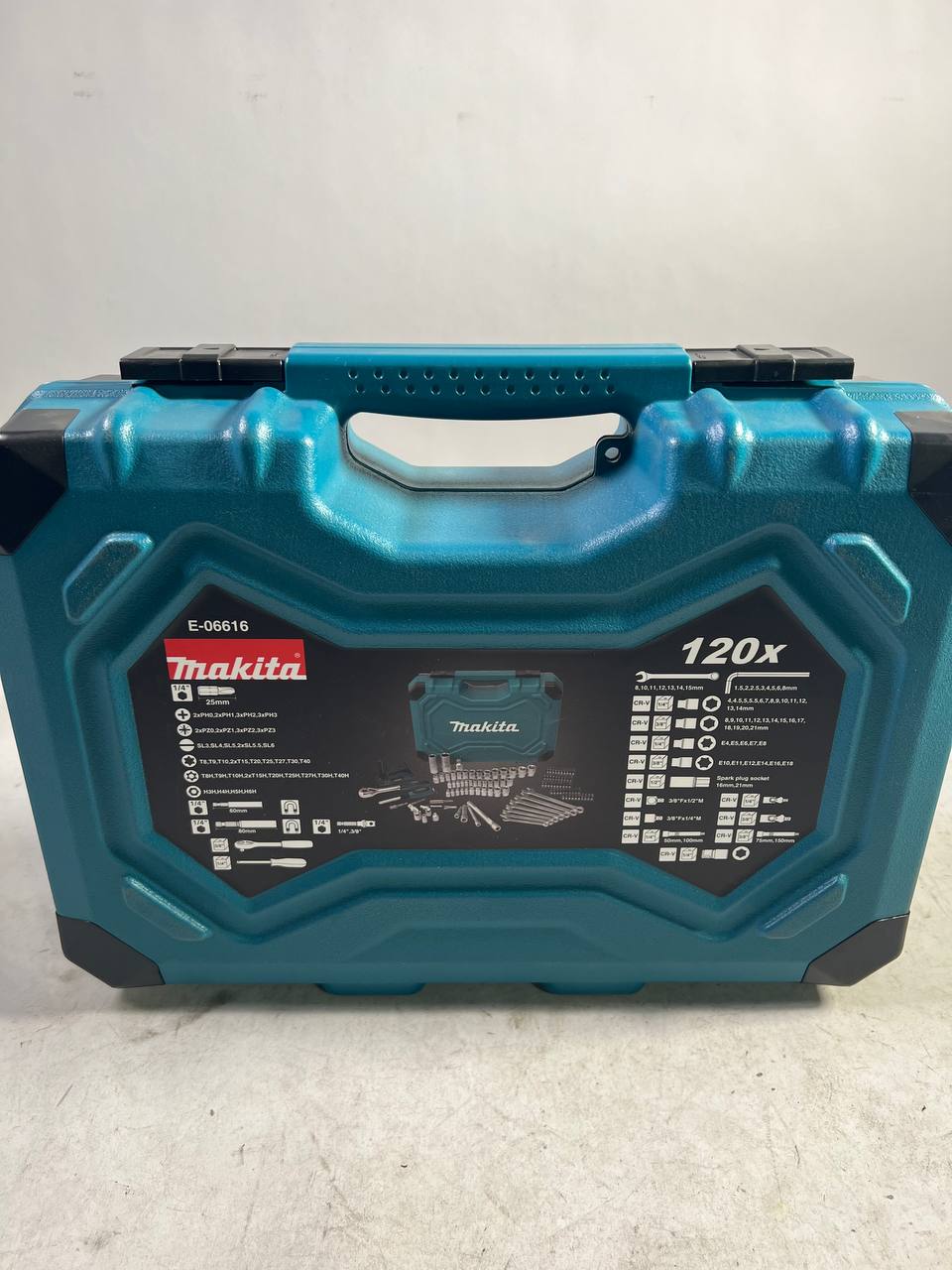 Das Werkzeug Set ( E-08713 ) von Makita enthält 120 klemmgesicherte Werkzeuge, darunter eine Hebel Umschaltknarre, Bits, Steckschlüssel, Steckschlüsseleinsätze, Winkelschraubendreher, Schraubendreher und - schlüssel, Verlängerungen, Gelenke und Adapter. Die 72- fach verzahnte Umschaltknarre mit 2- Komponenten- Griff bietet einen Rechts/Linkslauf (durch Hebel umschaltbar). Das umfangreiches Werkzeug Set eignet sich für die Werkstatt, für die Montage, für Baustellenfahrzeuge und für Privatpersonen. Die Werkzeuge sind aus Chrom Vanadium Stahl hergestellt. Das Set wird in einem robusten Makpac Gr. 1 geliefert. Ideal geeignet zum Beispiel für Automechaniker, Hausmeister oder Heimwerker, der wert auf Qualität legt. Makita ist ein führender Elektrowerkzeughersteller, der durch lange Tradition und Qualität überzeugt.