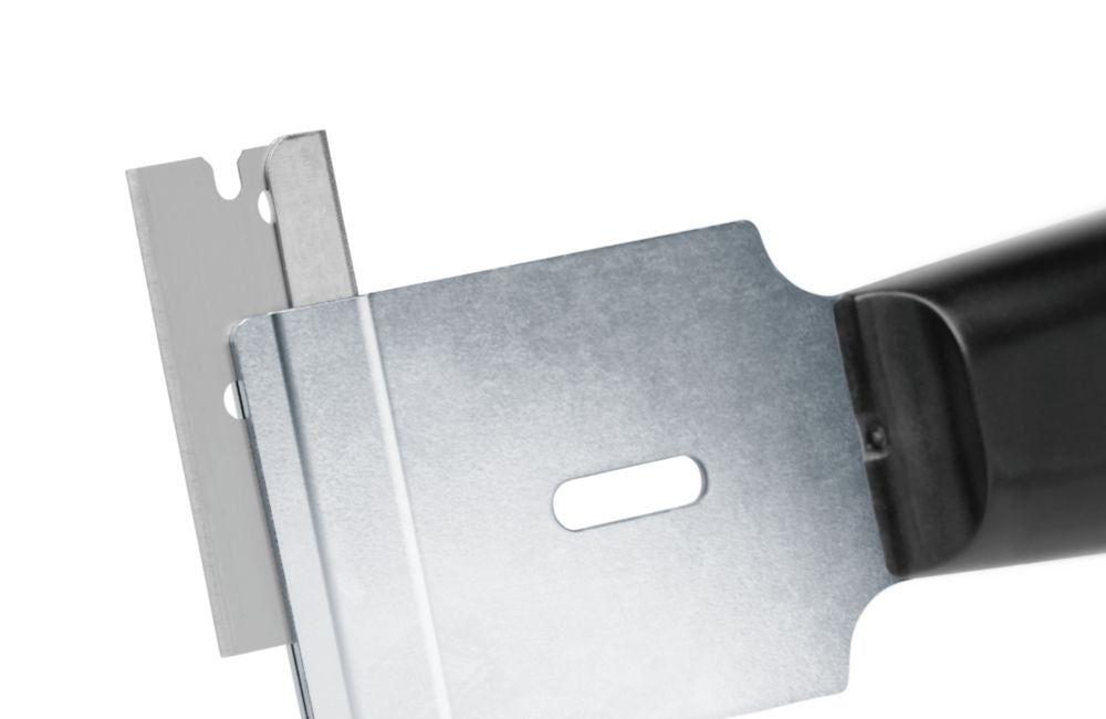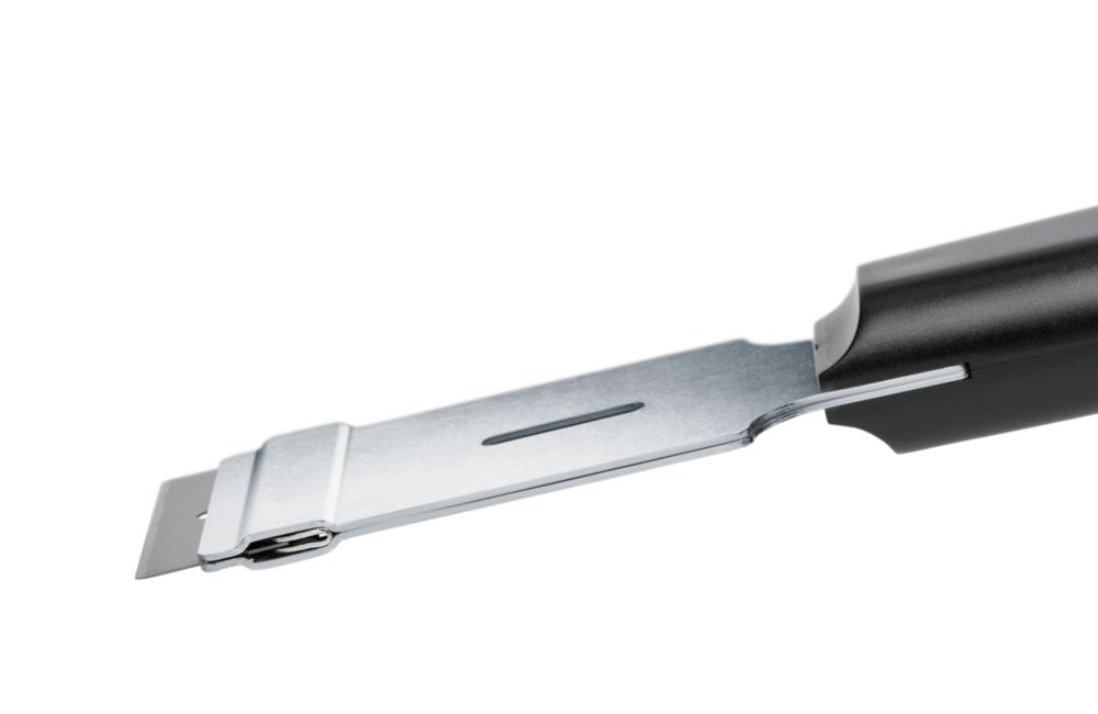 mit großem abgerundeten Griff · mit Schutzkappe und montierter Bügelklinge Nr. 44 · zum Entfernen von Rückständen auf glatten Oberflächen