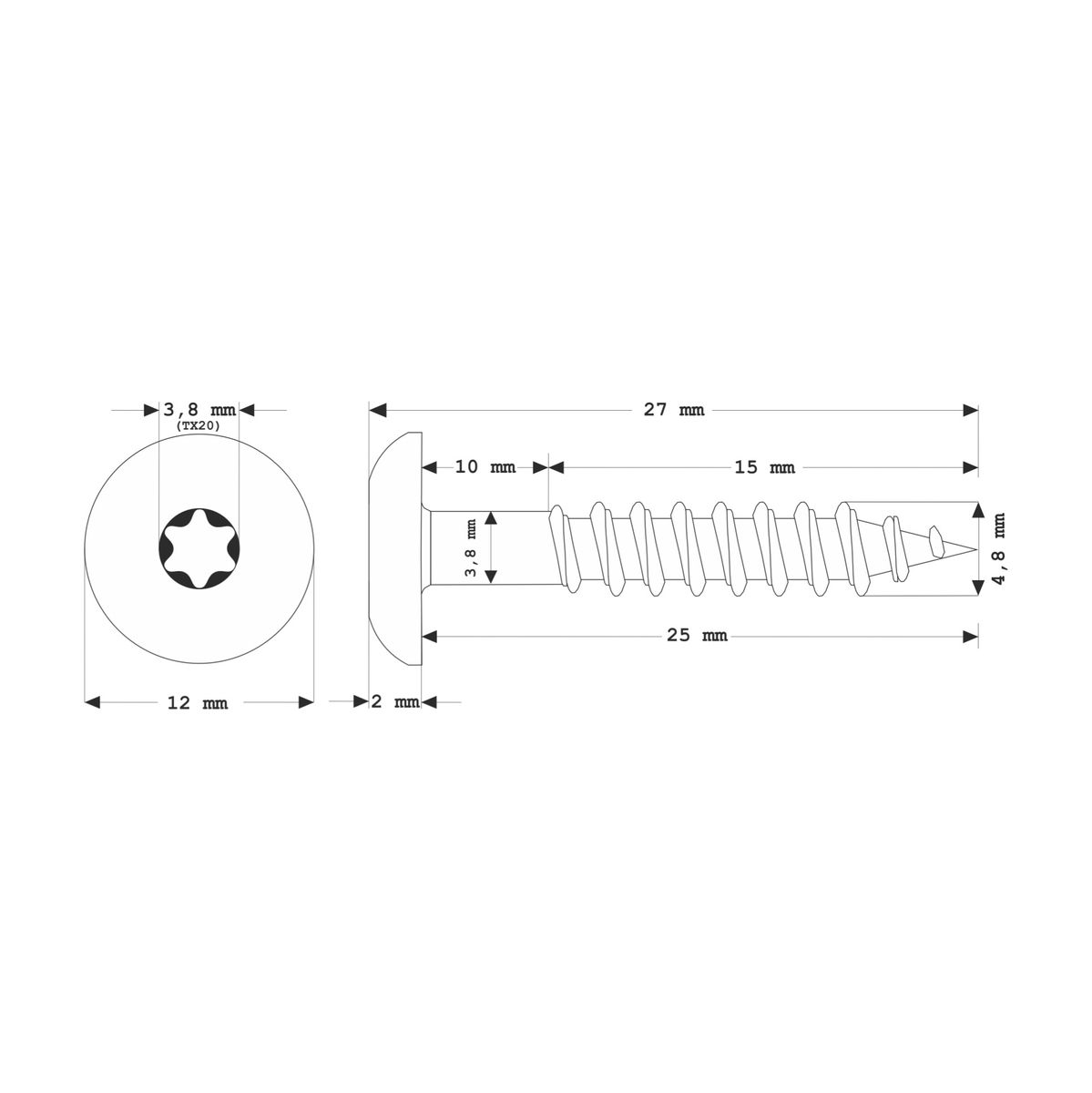 Meisterling Fassaden Schrauben 4,8x25 mm 100 Stück ( 010020000011 ) 12 mm Flachkopf anthrazit mit Torx Teilgewinde V2A Edelstahl