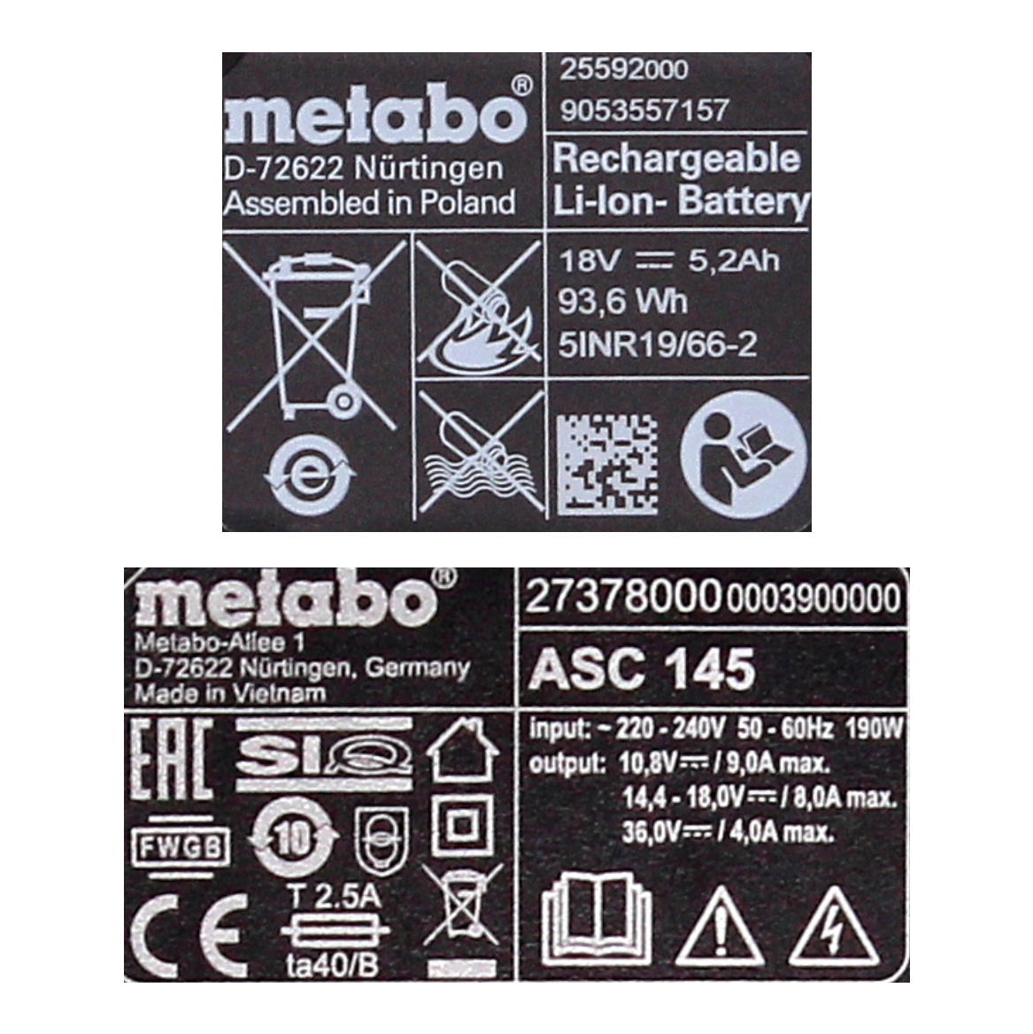 Metabo Akku Basis Set 18V mit 2x Akku 5,2Ah + Ladegerät ASC 145 ( 685051000 )