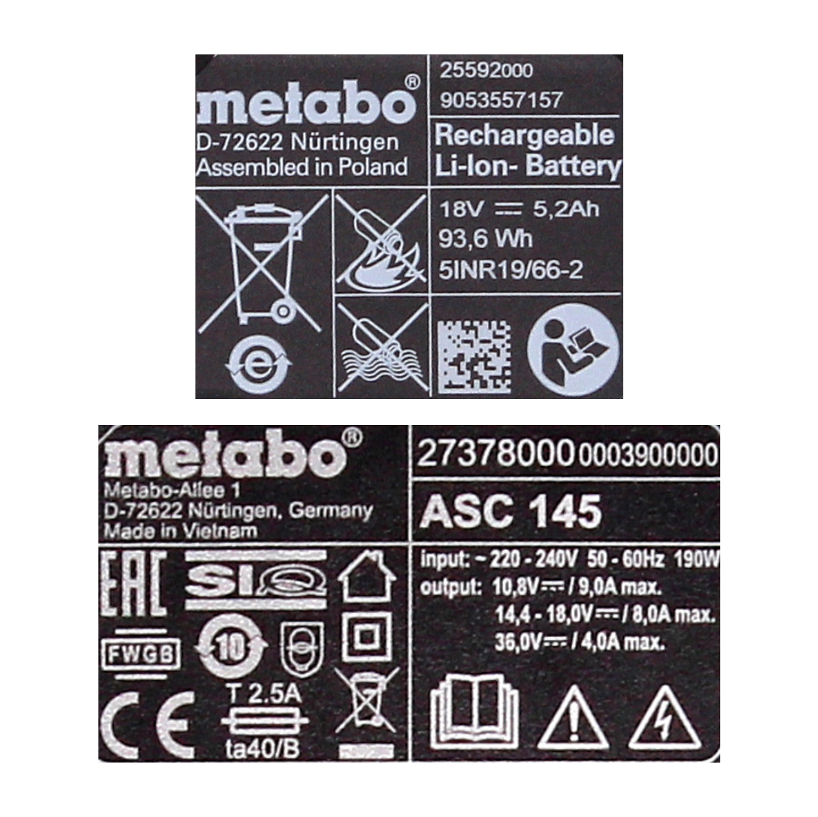 - 1x Metabo Ladegerät ASC 145 ( 627378000 )