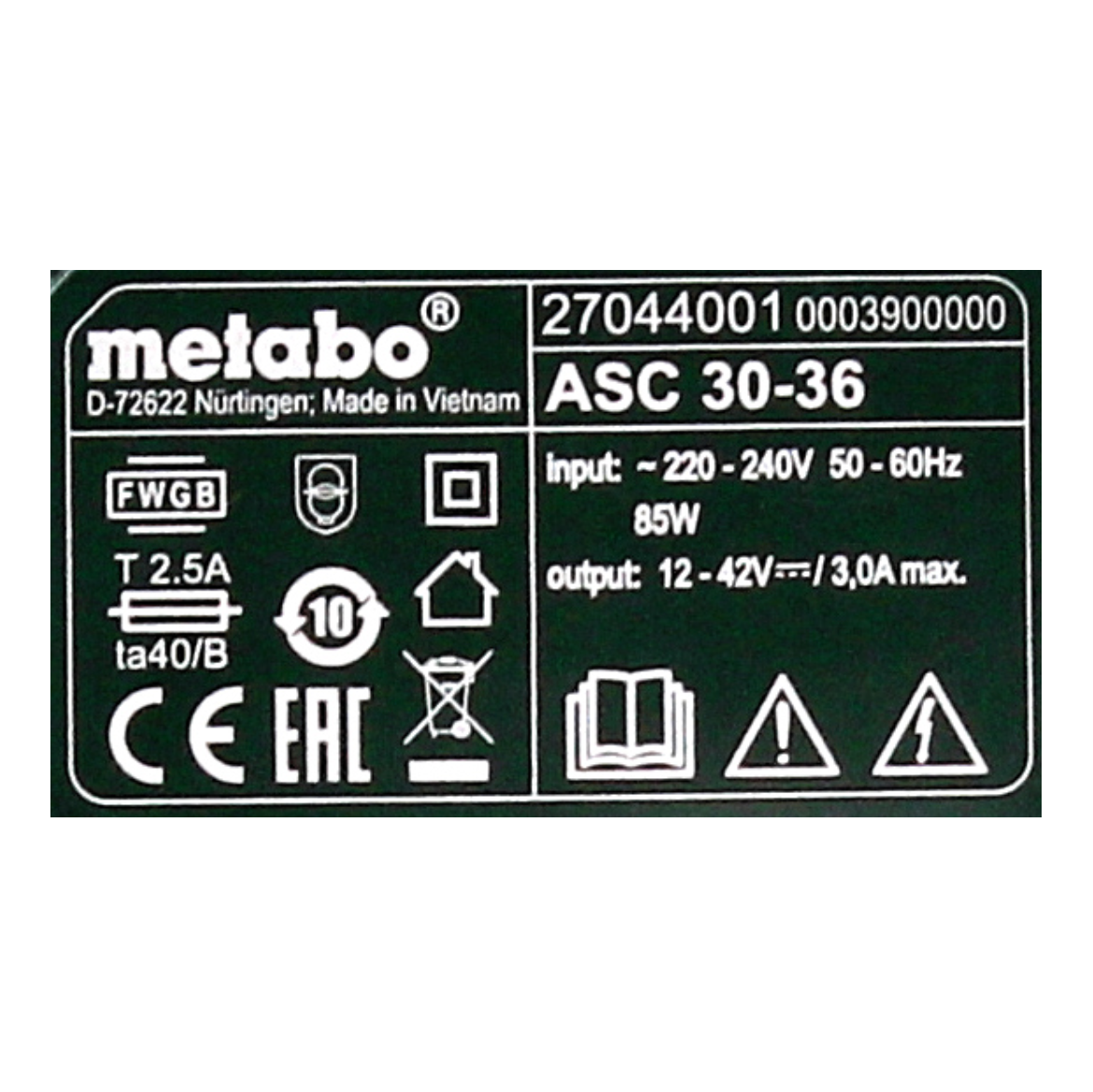 - 1x Metabo ASC 30-36V Ladegerät ( 627044000 )
