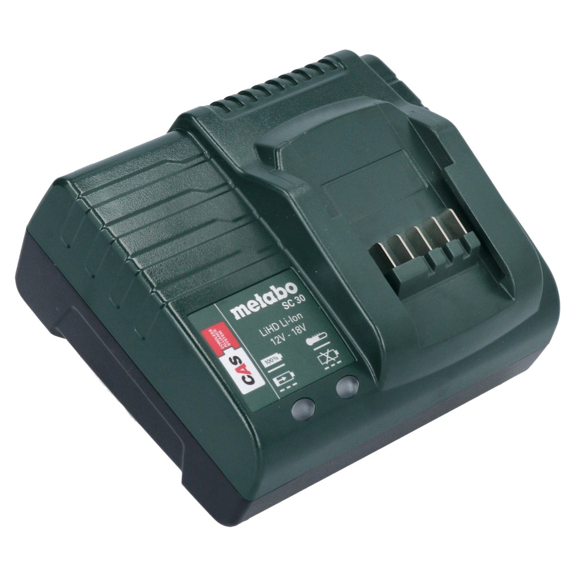 Die Firma Metabo bietet hier mit dem SC 30 ein Ladegerät, das sich zum Aufladen aller Li-Ion und aller LiHD Akkus im 12 V und 18 V Bereich aus dem Hause Metabo eignet. Dank seines maximalen Ladestroms von 2,6 A werden die Akkus schnell wieder aufgeladen und sind wieder einsatzfähig. Der besondere Vorteil dieses Ladegeräts ist seine Eignung zum Aufladen aller Akkupacks der CAS (Cordless Alliance System) Partner wie zum Beispiel: Rothenberger, Edding, Fischer, Mafell, Collomix, Eibenstock, Eisenblättert, Haaga, Starmix, Steine, Rokamat, Birchmeier. Ein Ladegerät für alles.