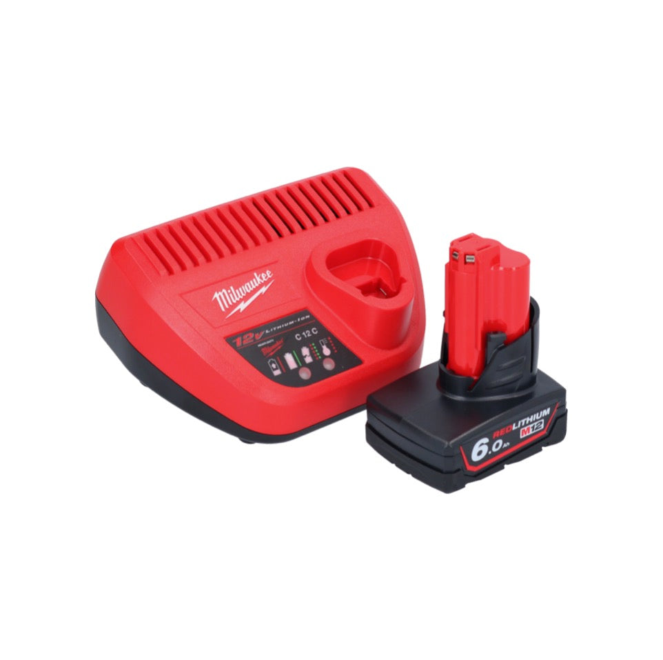 - 1x Milwaukee M12 B6 12 V 6,0 Ah / 6000 mAh Li-Ion Einschub Akku