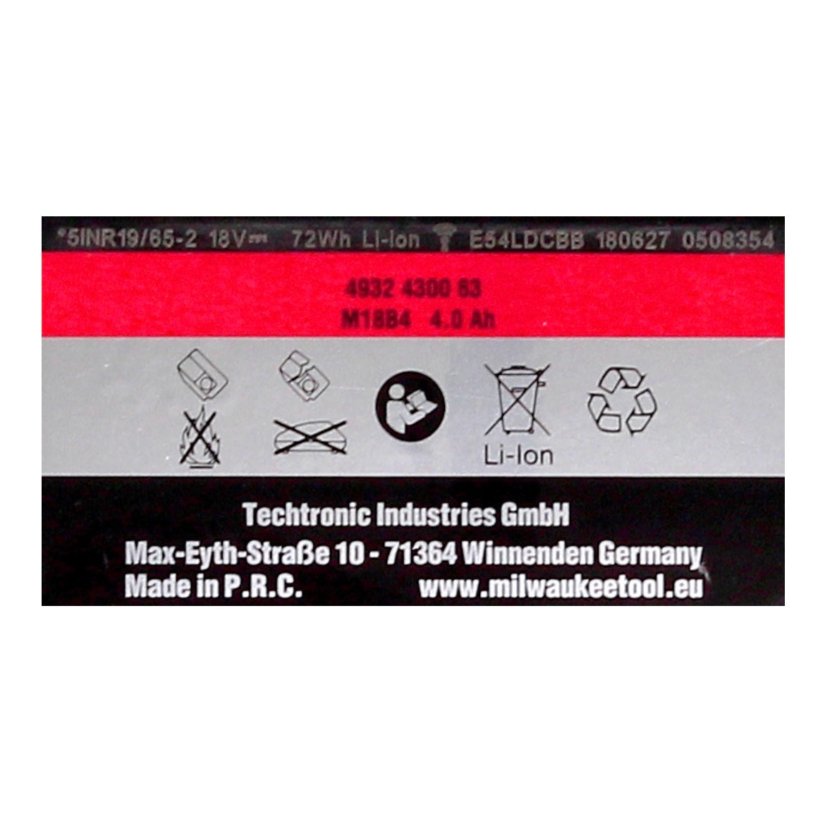 - 1x Milwaukee M18 B4 Akku 18 V / 4,0 Ah / 4000 mAh RED Li-Ion ( 4932430063 )