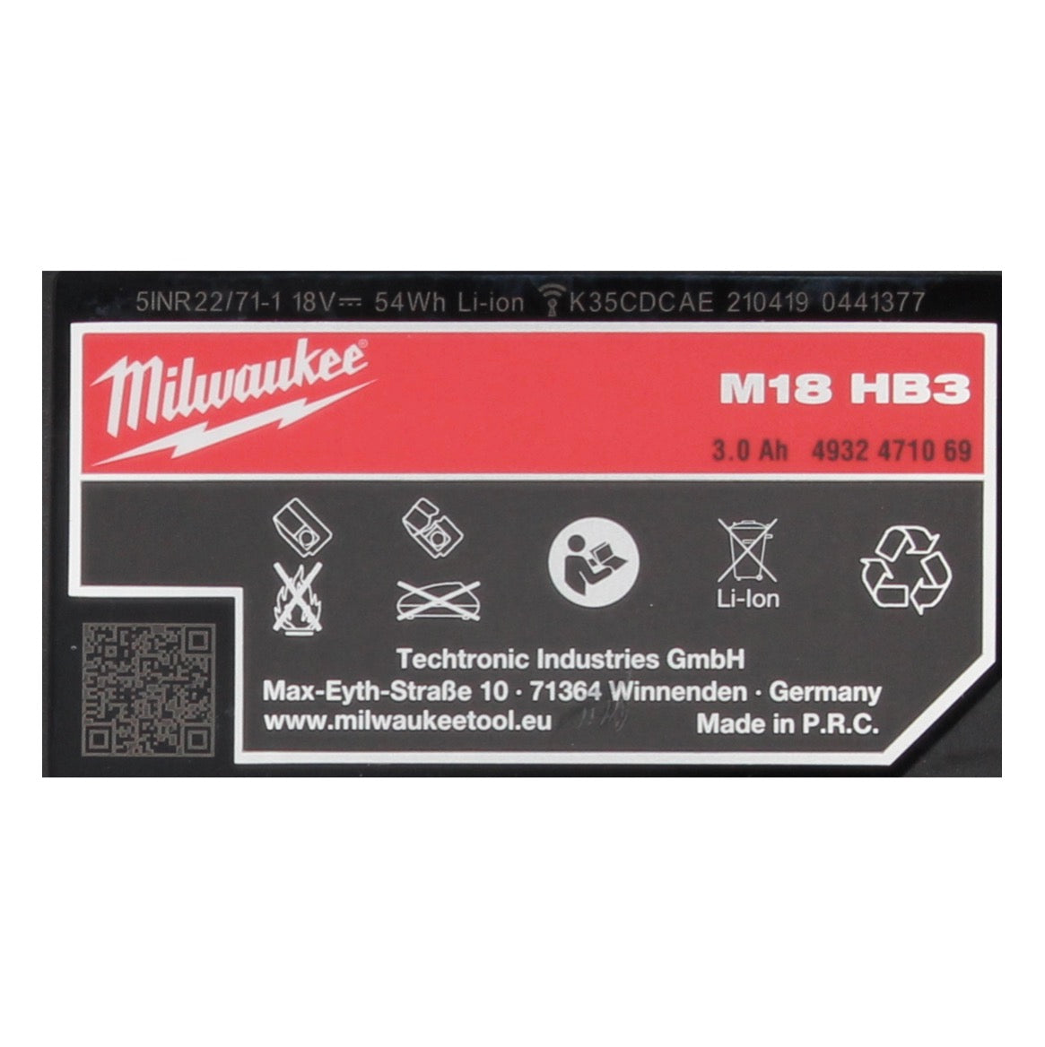 - 2x Milwaukee M18 HB3 High Output 18 V 3,0 Ah / 3000 mAh Li-Ion Akku ( 4932471069 ) mit Ladestandsanzeige