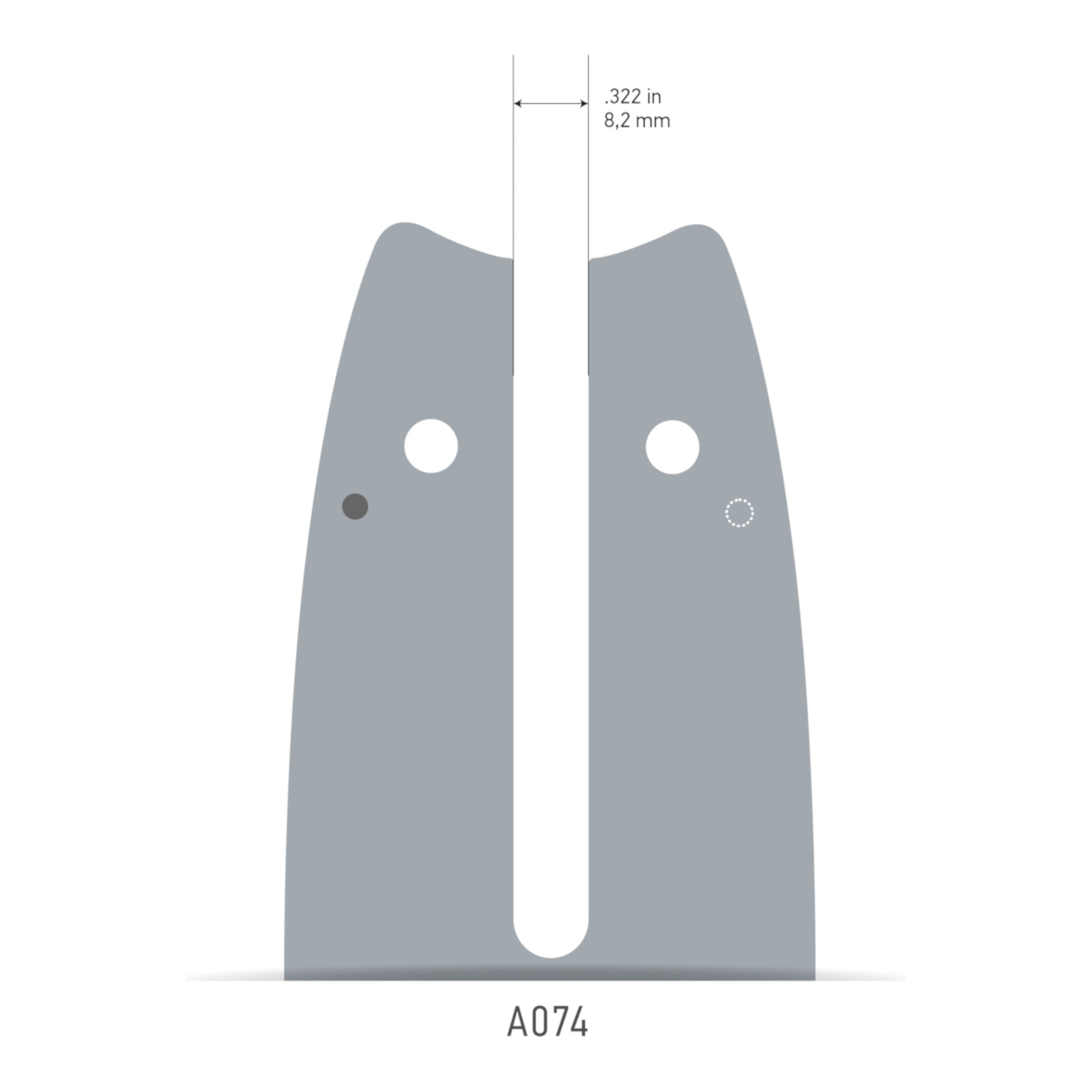 Die Kombination aus einer 14"-Schiene und einer 3/8" Niedrigprofilkette ist speziell für professionelle Baumpfleger entwickelt, die eine leistungsstarke Kette mit minimaler Vibration und geringem Rückschlag benötigen. Mit einer Teilung von 3/8" Low Profile™ und einer Schnittfuge von 1,3 mm (.050") sorgt diese Kette für präzises Schneiden und hohe Effizienz. Die Kette verfügt über 74 Treibglieder und ist dank der LubriTec™-Technologie besonders langlebig, da sie Kette und Führungsschiene kontinuierlich schmiert und so die Reibung verringert.