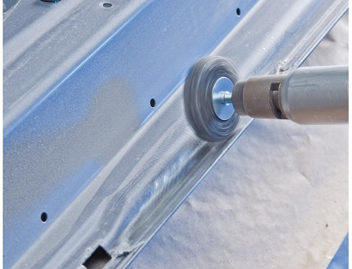 Produktbeschreibung:zum Reinigen, Entrosten, Glätten, Putzen von Schweißnähten, leichten Entgraten und Entfernen von Korrosion und Lacken · Besatzmaterial Stahldraht verfügt über eine hohe Zug- und Biegewechselfestigkeit · gewährleistet eine optimale Abnutzung des Drahtes sowie eine hohe Standzeit, auch bei extremen Bürstanwendungen Stahldraht hält Temperaturen bis 300 °C stand. Schaft-Ø 6 mm