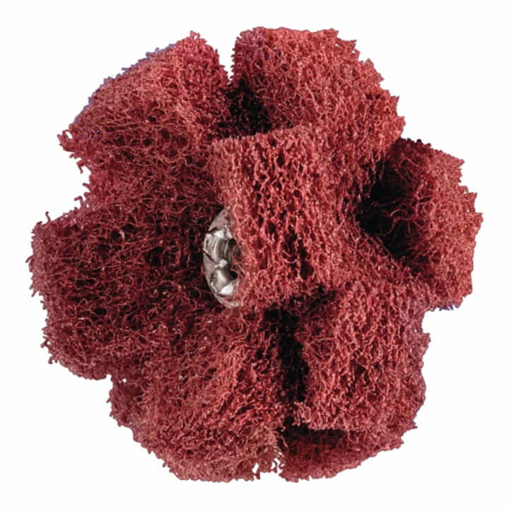 zum Reinigen, Entgraten und Feinschleifen von Innenflächen und Konturen für Materialien wie Edelstahl (INOX), Stahl, ALU/NE und anderen Werkstoffen geeignet · das Schleifvlies ist sternförmig in Lagen übereinander gelegt und im Zentrum miteinander verbunden · es ist speziell für enge Arbeitsbereiche wie Bohrungen und Vertiefungen und schwer zugängliche Stellen hervorragend einsetzbar