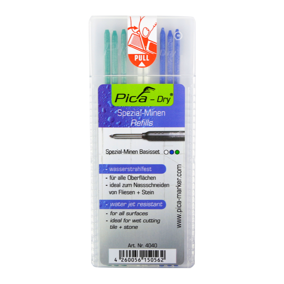 Zufällig entdeckte ich diesen Stift mit einem kleinen Plastikgehäuse (mit integriertem Spitzer) an der Arbeitshose eines Monteurs. Allein die auffällige, leuchtend grüne Farbe machte ihn schon interessant und als ich sah, wie problemlos er sichtbare Striche auf lackiertem Metall hinterließ und tiefe Bohrlöcher markieren konnte, musste ich ihn unbedingt haben.
