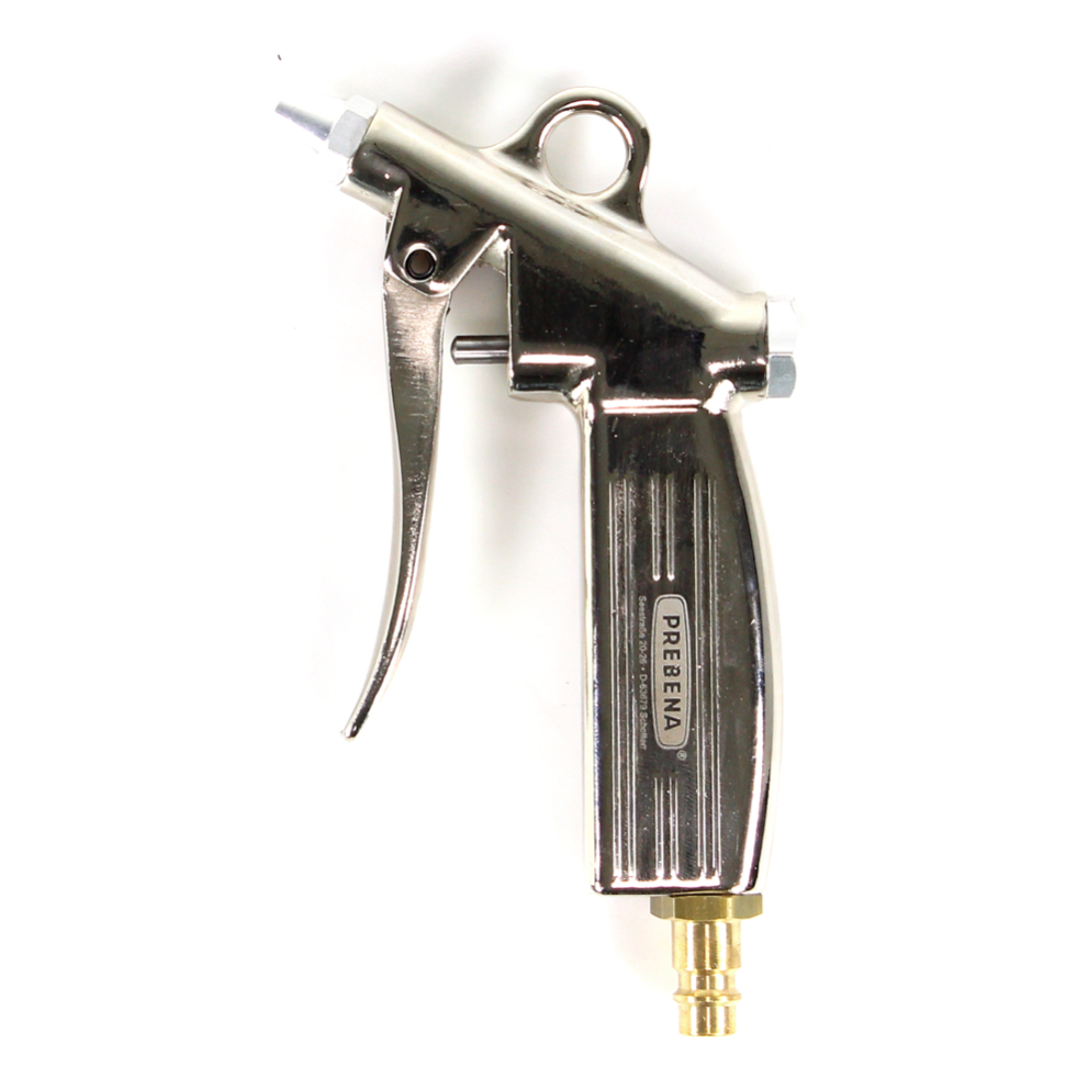 Die handliche Prebena Druckluft Blaspistole aus Aluminium eignet sich mit seiner schmalen Bohrung ideal zum kraftvollen Ausblasen und Reinigen von Maschinen, Werkstücken, Bohrungen und Hohlkörpern.