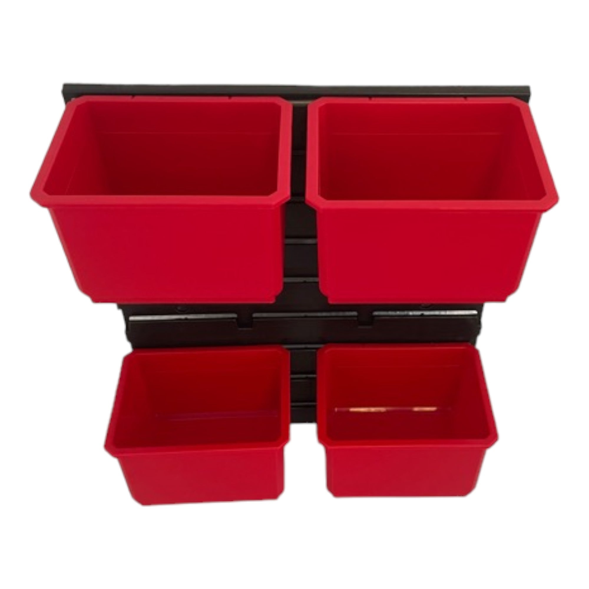 Mit dem Container Set Nr. 1 von QBRICK System ist das Organisieren der Werkstatt kein Problem mehr. Die 4 Behälter lassen sich frei auf der Werkstattwand befestigen, sodass man individuelle Ausrichtung und Ordnung genießen kann. Die Platte lässt sich einfach an der Wand anbringen. Zusätzlich können die Behälter den Koffern der ONE und TWO Serie verwendet werden, was Sie zu einer individuell einsetzbaren Transportmöglichkeit für diverse Kleinteile macht.