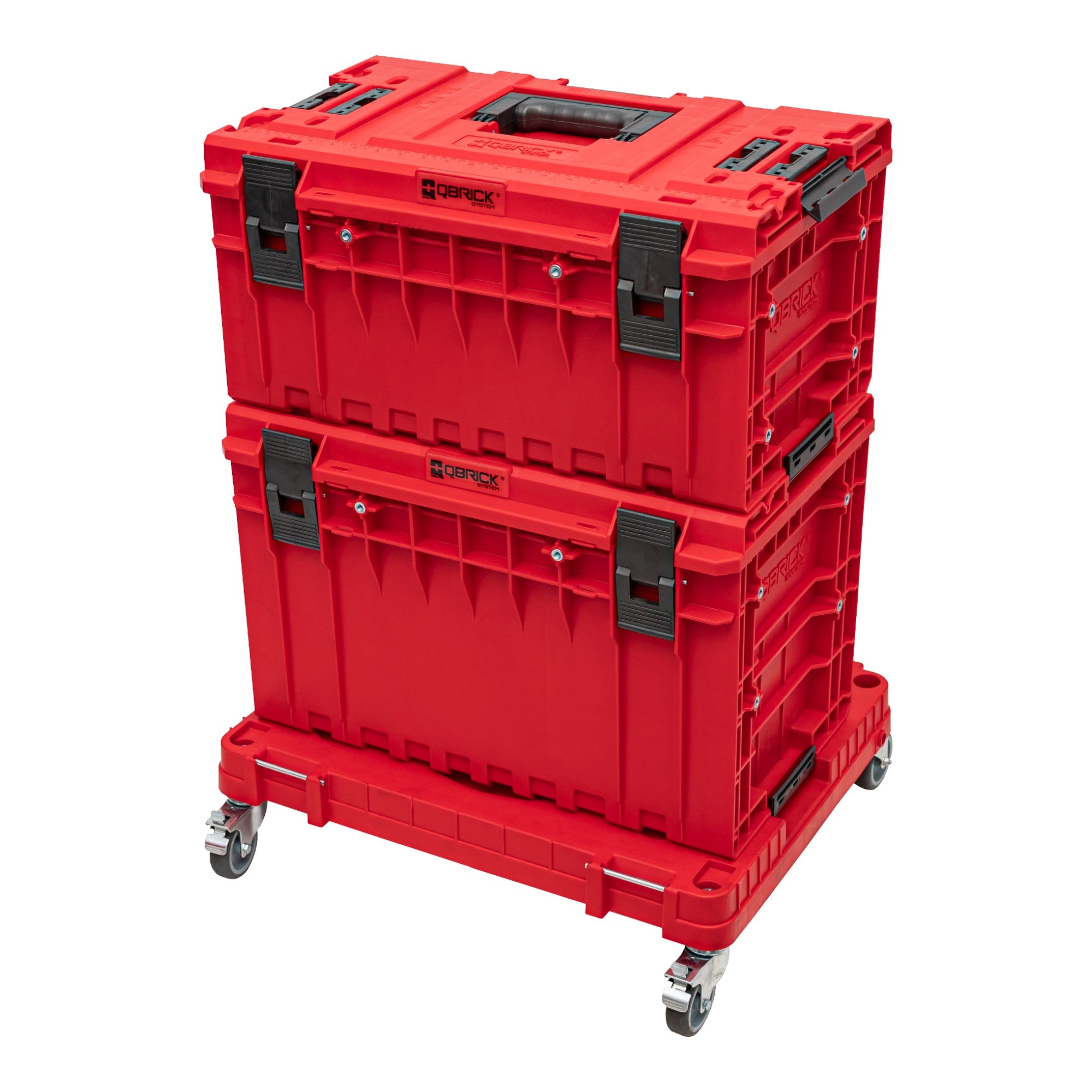 Qbrick System ONE Transportplattform 2.0 Workshop RED Ultra HD 625 x 503 x 160 mm 120 kg mit Schwenkrädern aus Metall und Bremse
