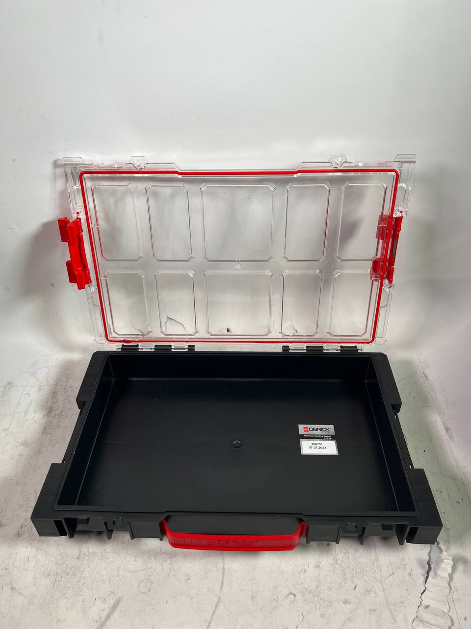 Qbrick System PRO Organizer 100 mehrschichtige Schaumstoffeinlagen ist das kompakteste Modell der PRO-Reihe. Die wichtigsten Vorteile dieses Organizers sind das patentierte Easy Access System, eine Dichtung im Deckel, ein super haltbarer Polycarbonat-Deckel, ein ergonomischer Griff, seitliche Anschlüsse aus Polyamid. Die MFI-Version ist mit mehrschichtigen Schaumstoffeinlagen ausgestattet, die nach dem Schneiden entsprechender Löcher Handwerkzeuge und Elektrowerkzeuge perfekt schützen.