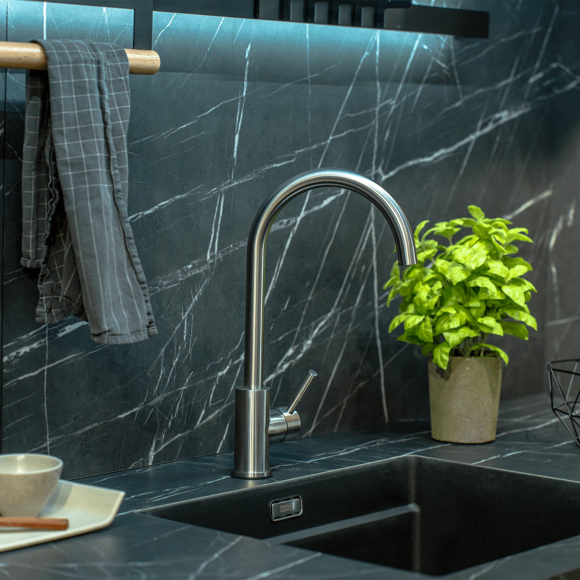 Die Küchenarmatur Föhr 200 von Rosenhahn & Söhne vereint Langlebigkeit und modernes Design. Mithilfe des drehbaren Schwenkbereichs kann jede Stelle mühelos innerhalb und außerhalb der Spüle erreicht werden. Zudem wird die Benutzung von jeder Seite ermöglicht und kann für mehr Platz ganz einfach weggedreht werden! Das edle Design in gebürstetem Stahl und die hochwertige Verarbeitung aus Messing, machen unsere Spültischarmatur zu einem echten Hingucker. Die Legierung schützt zudem vor Kalkresten und Rost. Eine ausführliche und veranschauliche Bedienungsanleitung hilft Ihnen beim problemlosen Einbau.