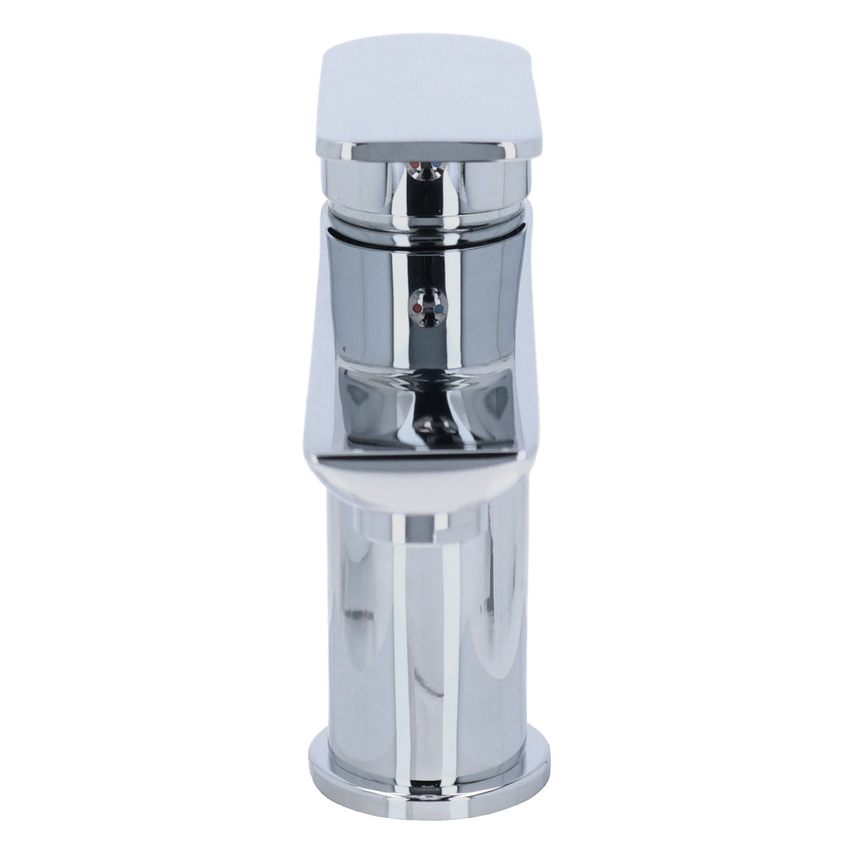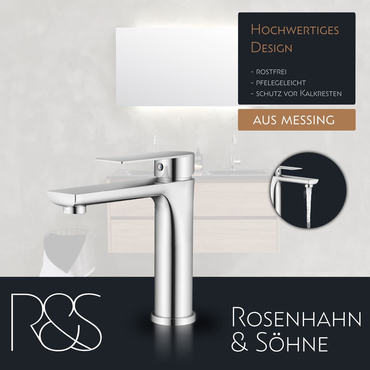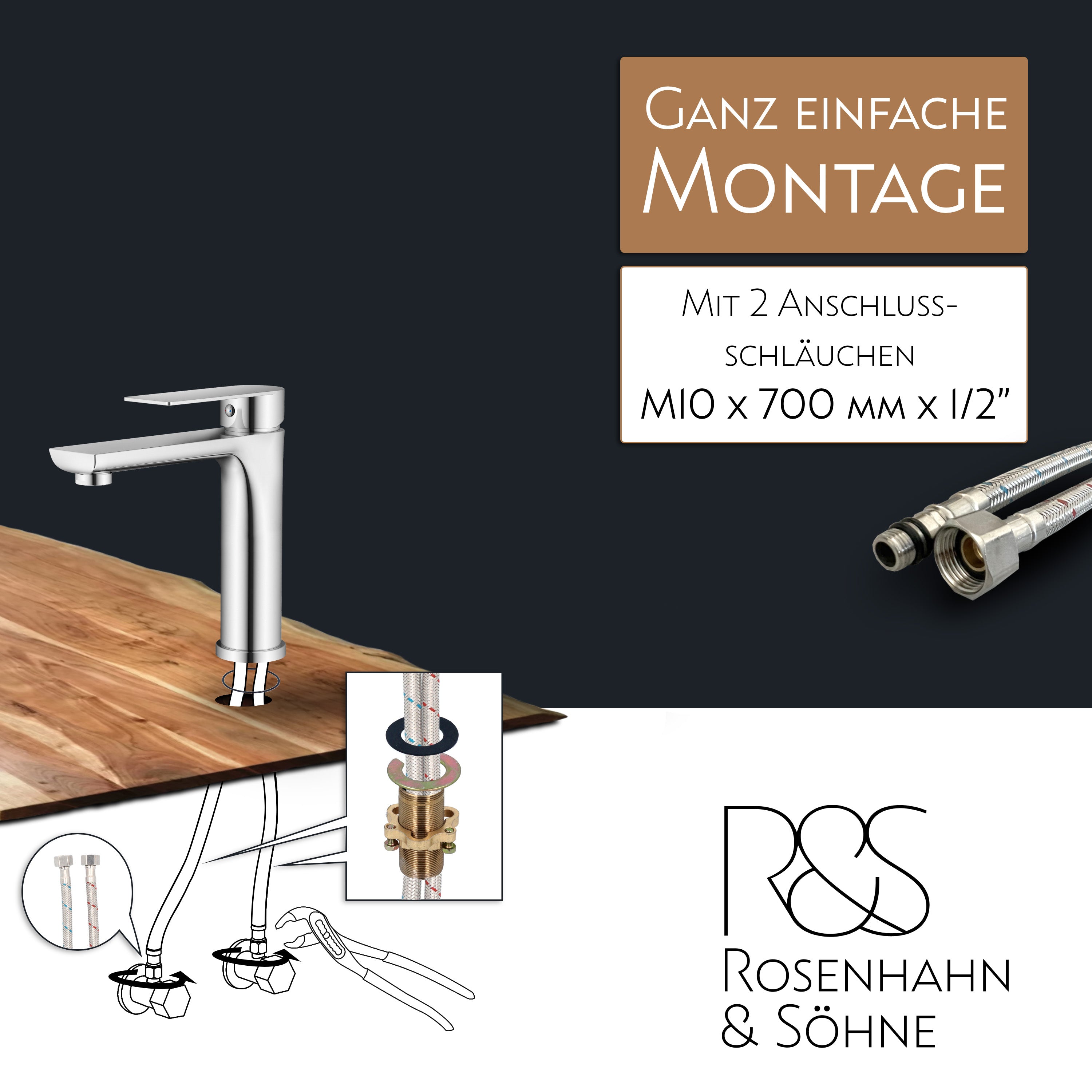 Rosenhahn & Söhne Poel M Design Badarmatur Wasserhahn Badezimmer - Armatur Bad [Chrom] - Heiß + Kalt Waschtischarmatur + Anschlussschläuche