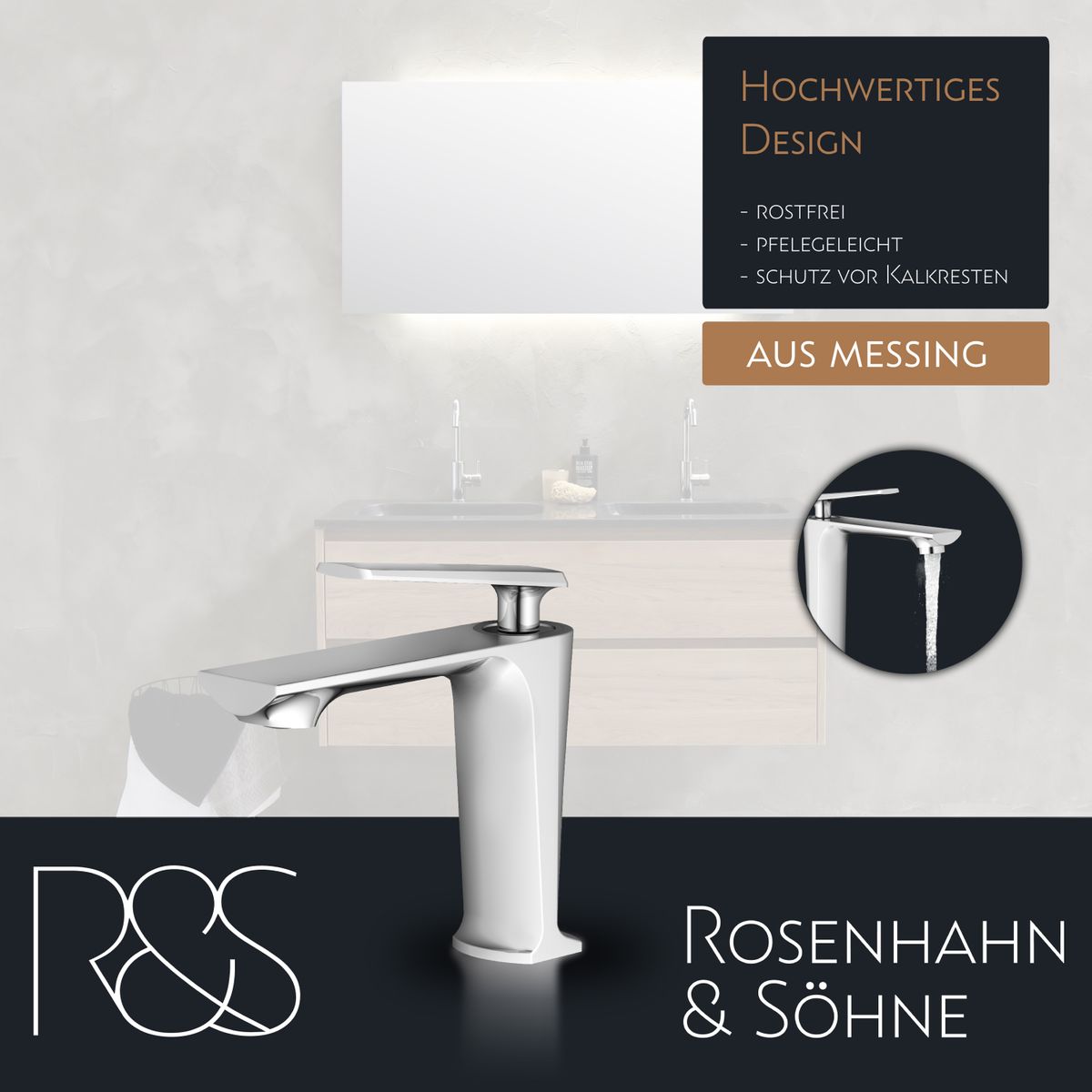 Rosenhahn & Söhne Vilm M Design Badarmatur Wasserhahn Badezimmer - Armatur Bad [Chrom] - Heiß + Kalt Waschtischarmatur + Anschlussschläuche