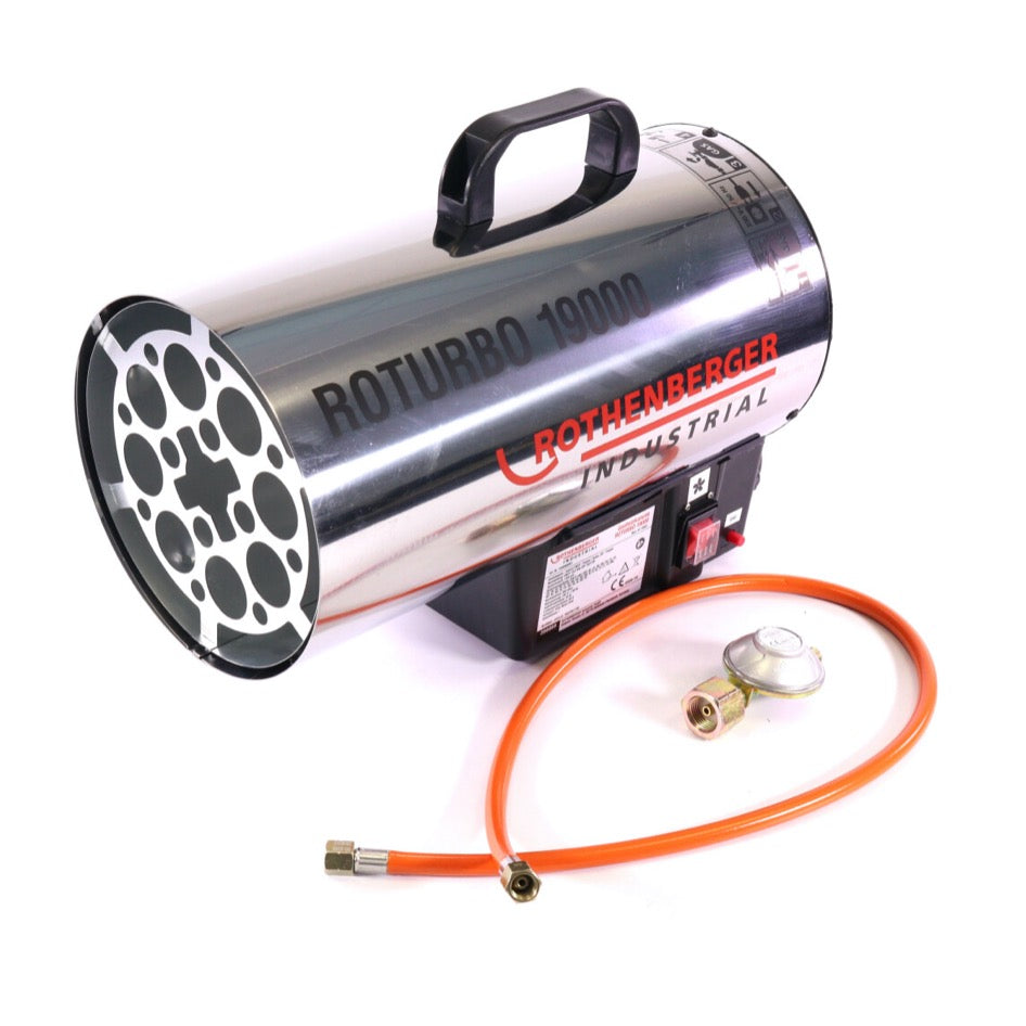 Rothenberger Industrial RoTurbo 19000 Heizkanone + Piezo-Zündung + Schlauch + Regler ( 1500000051 ) 980 °C Flamme