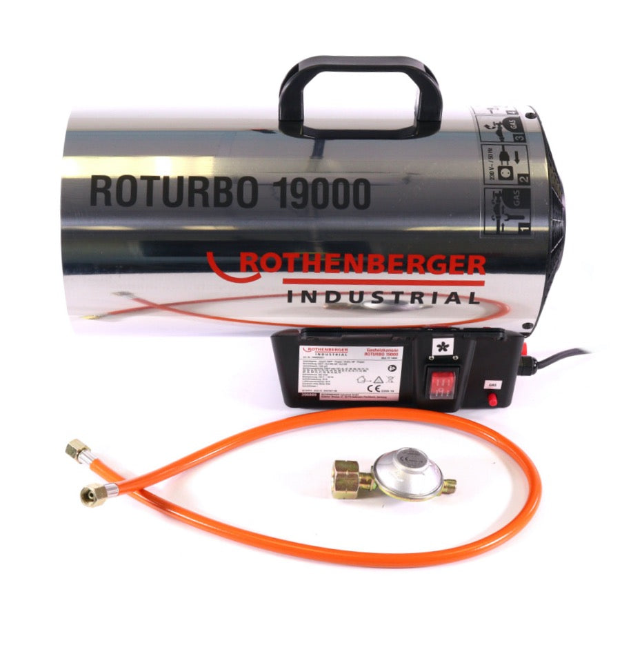 Rothenberger Industrial RoTurbo 19000 Heizkanone + Piezo-Zündung + Schlauch + Regler ( 1500000051 ) + RoGasfüllstandmessgerät Gasfüllmessgerät ( 1500003369 )