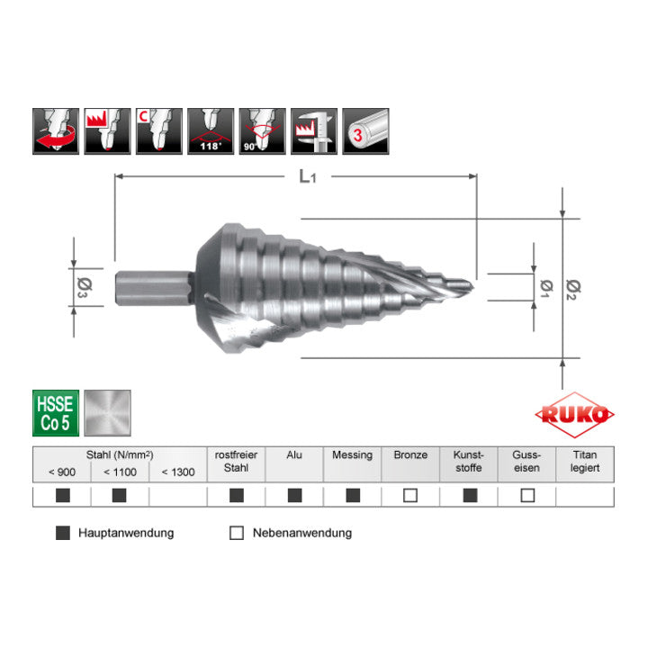 RUKO Stufenbohrer Bohrbereich 6 - 37 mm ( 4000601725 )