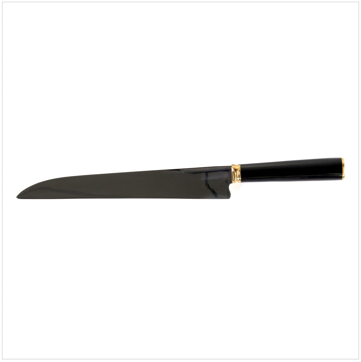 Ein wunderbares Küchenmesser aus der hochwertigen Messerfertigung Serra Grande: Dieses handgefertigte Messer ist der japanischen "Yanagiba-Form" nach empfunden -  so kann man den rohen Fisch bei der Sushi Herstellung in nur einem Schnitt teilen, so lässt sich die feine Struktur des Fischs erhalten. Die Klingenlänge von 25,4 Zentimetern und die Klingenstärke von 2 Millimetern machen das Messer zur idealen Lösung für anfallende Küchenarbeiten mit Fleisch und Gemüse. Um höchsten Ansprüchen zu genügen, werden nur die besten Werkstoffe bei der Fertigung verwendet: Die Klinge besteht aus dem rostfreiem Schwedenstahl ( X46Cr13 / AISI 420 C ) der auch in der Solinger Messerfertigung benutzt wird. Dieser Edelstahl wird in der Fabrikation von Hand gehärtet und poliert, so daß eine edle und glänzende Optik entsteht. Der edle Griff wird aus dem Holz des Imbuia gefertigt, auch Pfefferbaum oder brasilianische Walnuß genannt. Das dunkelbraune Holz mit seiner kleinporigen Struktur weist dunkle Streifungen auf und wirkt optisch wie Nussbaumholz, obwohl es sich nicht um einen Nußbaum handelt. Es ist hart und langlebig, durch die sorgfältige Trocknung, Glättung und Politur überzeugt es mit einer wunderbaren Griffigkeit.