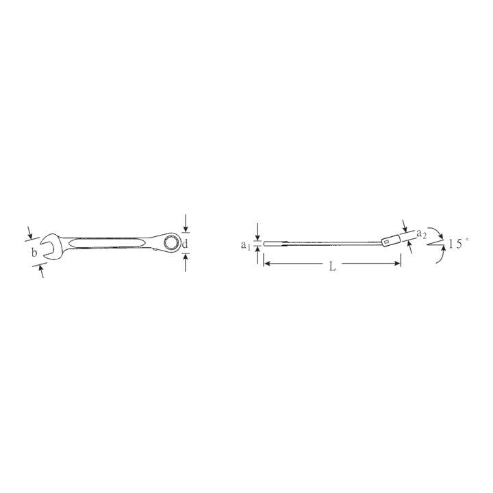 umschaltbar · Chrom-Alloy-Stahl · verchromt · Maulstellung 15°, Ringseite um 15°, abgewinkelt · 72 Zähne